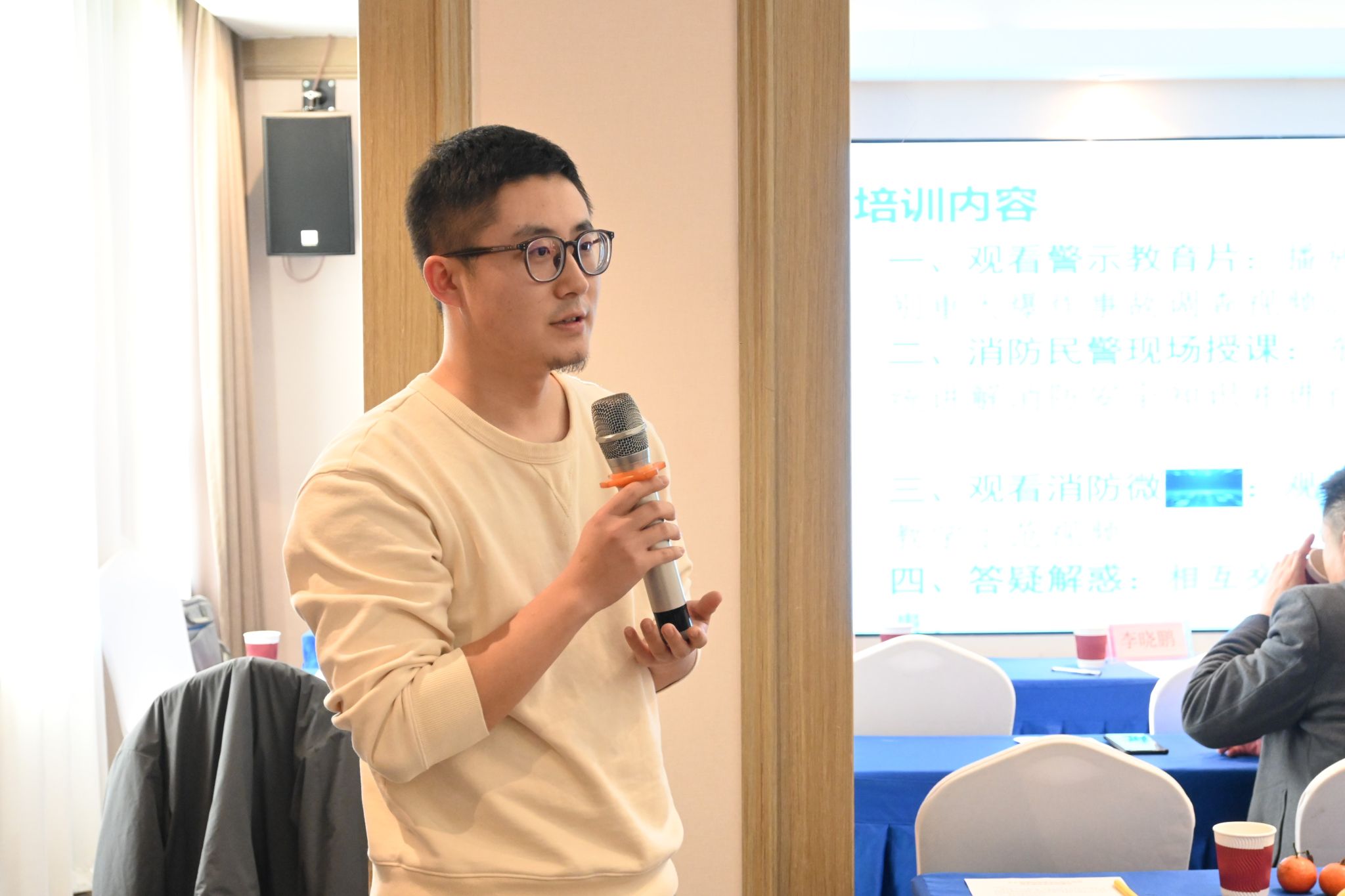 會(huì)議第三項(xiàng),由東儀路派出所李曉鵬警官向與會(huì)人員現(xiàn)場(chǎng)授課,系統(tǒng)講解防詐反詐、消防安全等知識(shí),并演示消防設(shè)備使用方法。