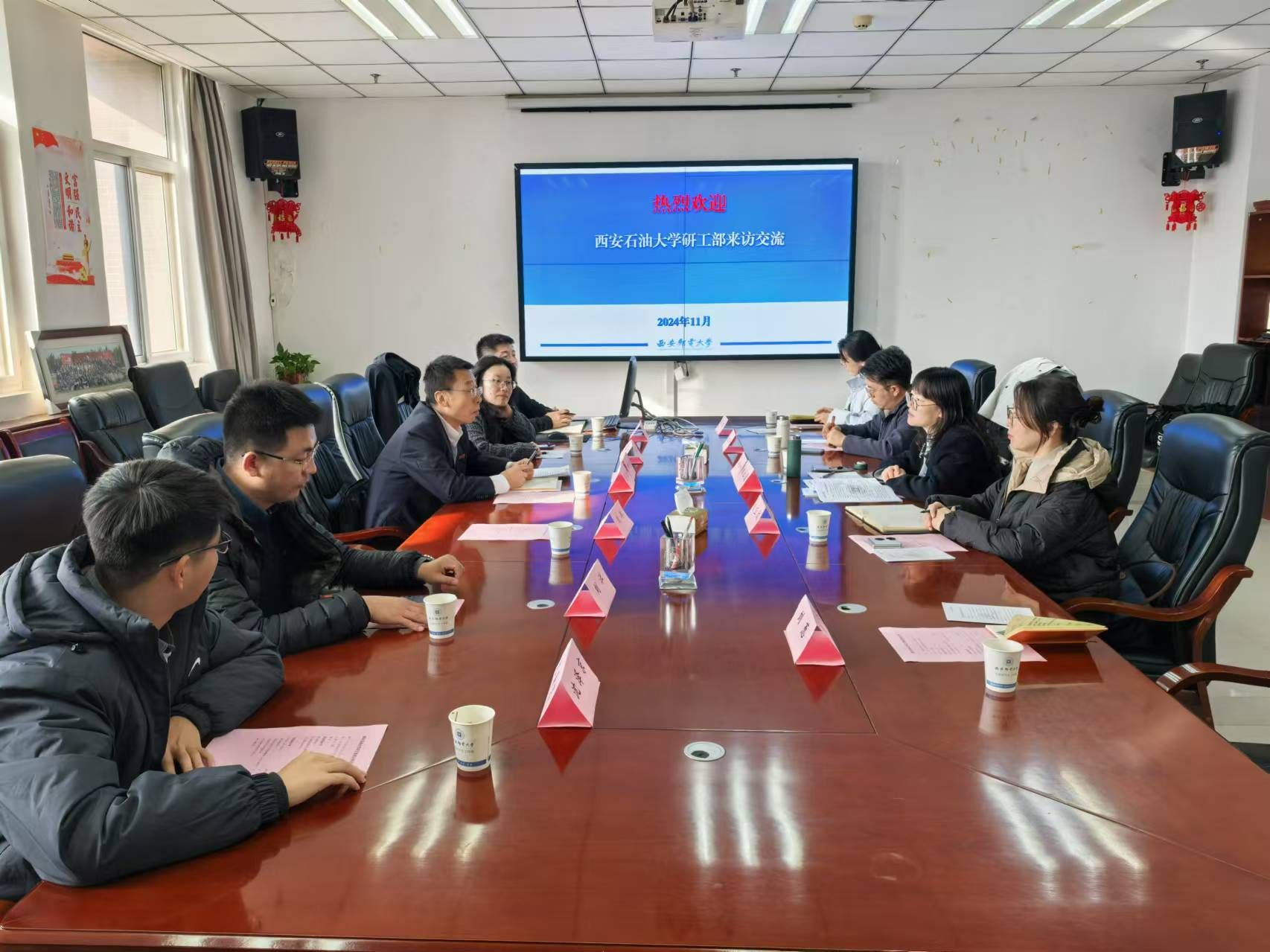 11月26日上午,研究生工作部部長田虹霞帶隊(duì)赴西安郵電大學(xué)研究生工作部調(diào)研交流,重點(diǎn)學(xué)習(xí)交流西安郵電大學(xué)在研究生思想教育、學(xué)科競(jìng)賽、隊(duì)伍建設(shè)、特色工作及管理方法等方面的經(jīng)驗(yàn)和做法。西安郵電大學(xué)研究生工作部部長高向鵬、副部長張欣及相關(guān)科室老師參加了調(diào)研座談會(huì)。