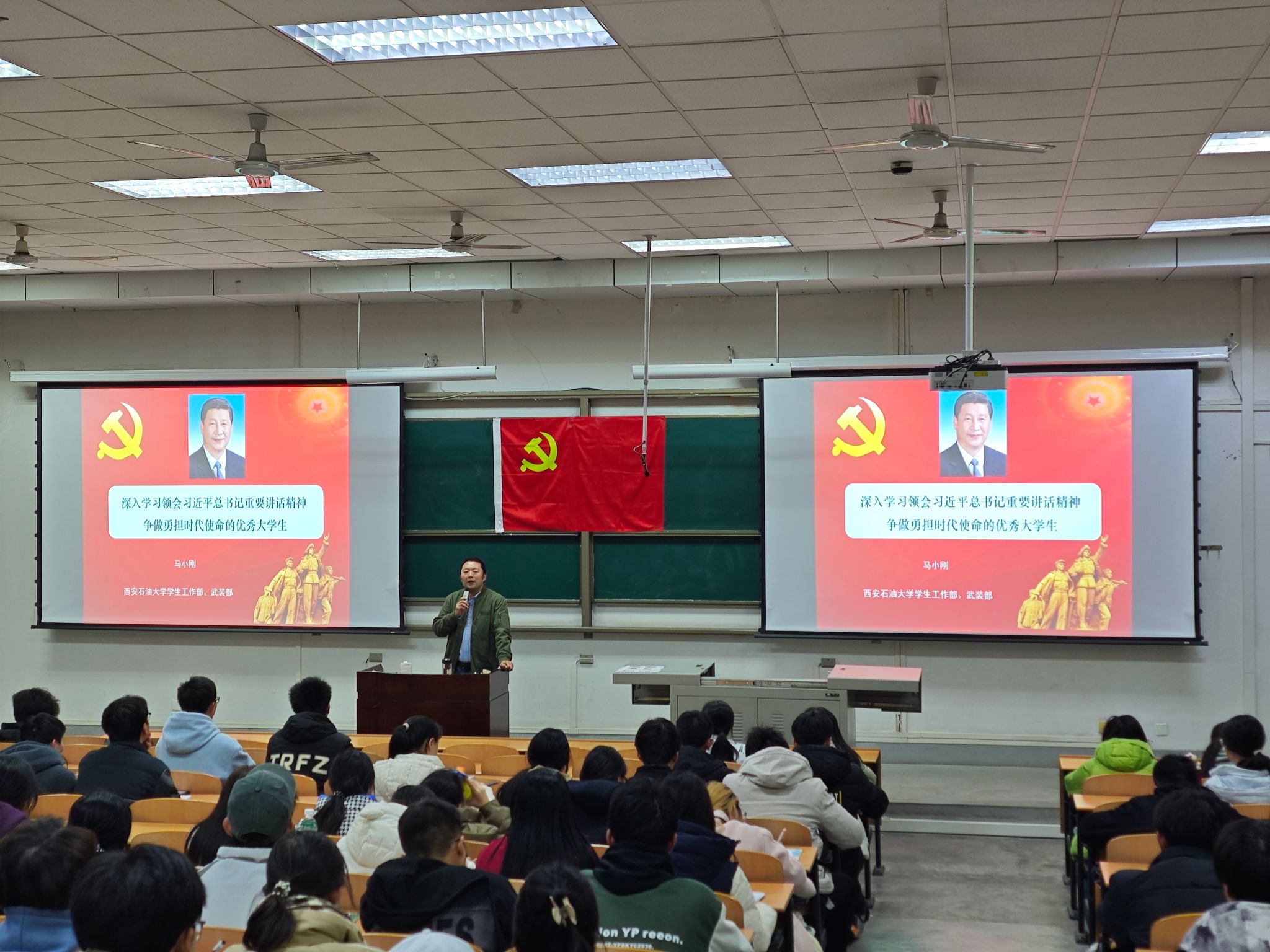 為加強入黨積極分子的培養(yǎng)教育,提高入黨積極分子的政治素質(zhì)和理論水平,11月26日晚,理學院、馬克思主義學院、體育學院在鄠邑校區(qū)博覽樓239教室聯(lián)合舉辦了第十九期入黨積極分子培訓班第五講。學生工作部、武裝部副部長馬小剛以《深入學習習近平總書記重要講話精神 爭做勇?lián)鷷r代使命的優(yōu)秀大學生》為題應(yīng)邀擔任主講。237名入黨積極分子參加了學習。