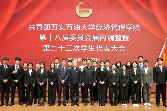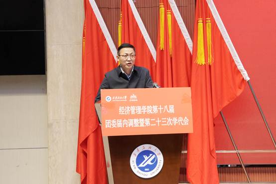 11月27日,共青團(tuán)西安石油大學(xué)經(jīng)濟(jì)管理學(xué)院第十八屆委員會(huì)屆內(nèi)調(diào)整暨第二十三次學(xué)生代表大會(huì)在鄠邑校區(qū)學(xué)術(shù)報(bào)告廳順利召開。校團(tuán)委書記王剛、經(jīng)濟(jì)管理學(xué)院黨委副書記楊生強(qiáng)、經(jīng)濟(jì)管理學(xué)院團(tuán)委書記李博文、校團(tuán)委干事李政、王澤文、學(xué)院各年級團(tuán)總支書記、輔導(dǎo)員以及各兄弟院(系)學(xué)生會(huì)主席團(tuán)代表、學(xué)院學(xué)生代表200余人參加了此次會(huì)議。