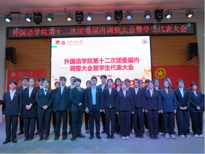 11月28日晚,外國語學(xué)院第十二次團委屆內(nèi)調(diào)整大會暨學(xué)生代表大會在鄠邑校區(qū)崇文樓118多功能廳召開。校團委副書記王軍策,學(xué)院黨委副書記邱嶺,學(xué)院團委書記陳浩出席大會,校學(xué)生會和各兄弟院(系)學(xué)生會負責(zé)人,學(xué)院學(xué)生代表共計110余人參加。