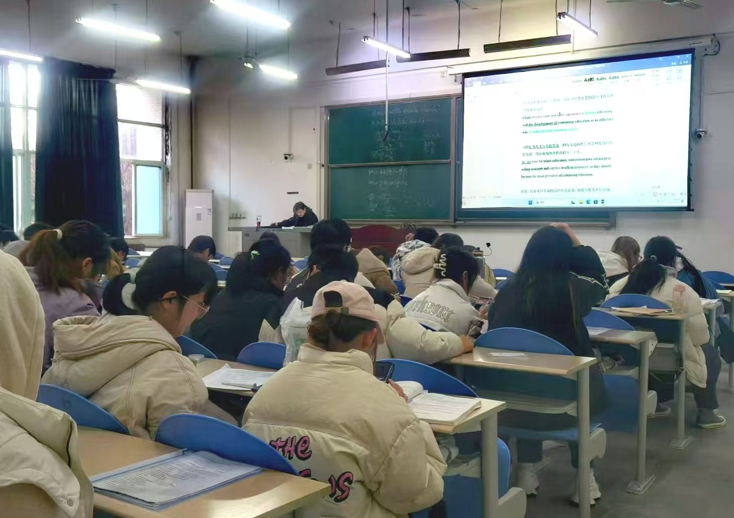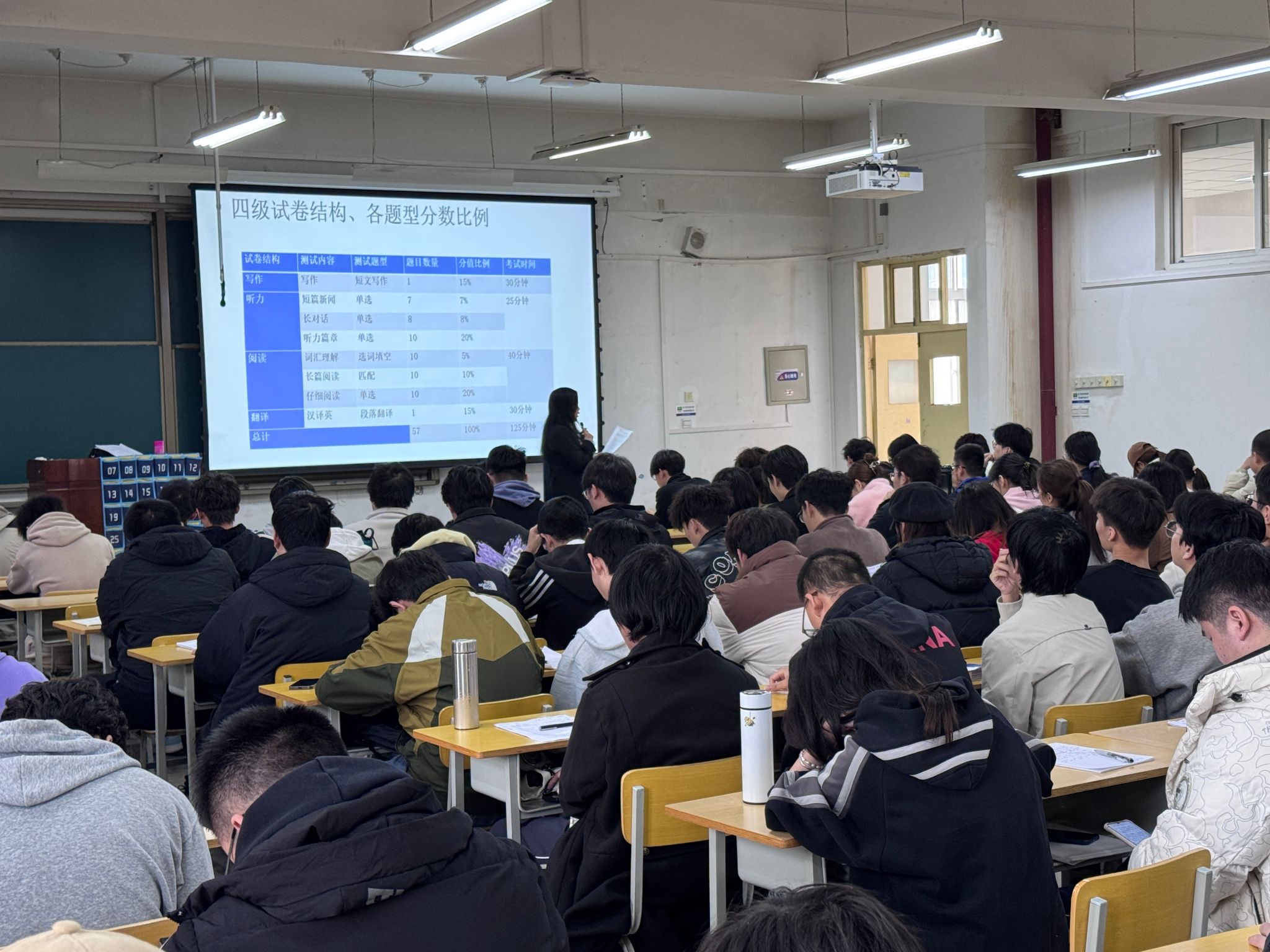 學(xué)院邀請外國語學(xué)院張磊、蔡曉青兩位專業(yè)老師,從11月19日開始,采用“模擬考試+試題解析”的方式系統(tǒng)講授往年四級考試真題或模擬題,學(xué)院2022級、2023級310名本科生分兩個(gè)大教室參加四級系列輔導(dǎo)。將“專家老師”的專業(yè)優(yōu)勢和“精準(zhǔn)打靶”的目標(biāo)優(yōu)勢相結(jié)合,在為期一個(gè)月的系統(tǒng)學(xué)習(xí)中,有效提高學(xué)生應(yīng)試能力。