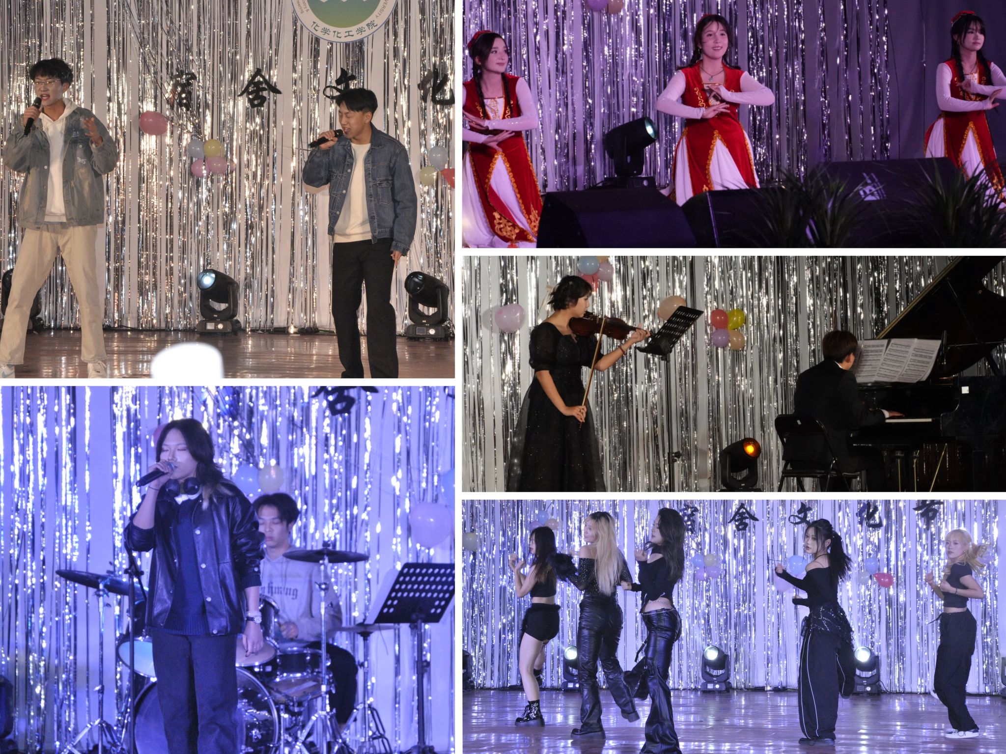 伴隨著動(dòng)感歡快的街舞表演,晚會(huì)正式拉開帷幕。歌曲、舞蹈、話劇、T臺(tái)秀等形式多樣的表演為觀眾呈現(xiàn)了一場(chǎng)視聽盛宴。2024級(jí)輔導(dǎo)員王蓉的舞蹈《人世間》以優(yōu)美且富有深意的肢體語言,為觀眾演繹出平凡日子里的不凡情感,帶觀眾穿越時(shí)光的長河。歌曲《美人魚》用音符編織出了美人魚在深海中搖曳身姿,在愛與夢(mèng)想間徘徊的故事?!秅olden hour》將悠揚(yáng)的鋼琴音符與靈動(dòng)的小提琴相結(jié)合,帶領(lǐng)觀眾踏入一段被陽光與詩意鋪滿的音樂旅程。舞蹈《寄明月》將古風(fēng)的典雅韻味與現(xiàn)代舞蹈的動(dòng)感活力巧妙融合,表演者用靈動(dòng)的身姿訴說著古老的故事。歌曲《可惜沒如果》唱出了人們?cè)诟星槊媲暗那优撑c后悔。本次活動(dòng)還邀請(qǐng)了與同學(xué)們朝夕相處的宿舍管理員代表登臺(tái)表演,他們表演的拐杖舞《叫一聲二奶奶》中將拐杖化為靈動(dòng)的藝術(shù)工具,使表演幽默詼諧又韻味十足。話劇《旅程——斷章取“誼”》的表演者們用他們精湛的演技,為觀眾展現(xiàn)友誼在時(shí)光長河中經(jīng)歷的波折起伏。充滿異域風(fēng)情的新疆舞表演讓觀眾領(lǐng)略到新疆這片土地獨(dú)特的藝術(shù)瑰寶,感受來自遠(yuǎn)方的熱情與活力。T臺(tái)秀以《if you feel my love》為靈感源泉,帶觀眾穿越古今,跨越文化的界限,在那悠揚(yáng)且富有韻味的旋律中,模特們用他們的步伐、身姿與服飾,展現(xiàn)出傳統(tǒng)與現(xiàn)代的交融,東方與西方的碰撞。歌曲《找自己》用觸動(dòng)靈魂的歌聲帶領(lǐng)觀眾探尋那些被遺忘的夢(mèng)想角落,重拾那份純粹與灑脫。舞蹈《meow》點(diǎn)燃了現(xiàn)場(chǎng)的熱烈氛圍,為觀眾演繹出獨(dú)特的喵趣與活力。《萬蝶振翅》的旋律響起,仿佛有成千上萬只蝴蝶在花叢中翩翩起舞。歌曲《凄美地》的表演者用深情的嗓音唱出了對(duì)過去美好時(shí)光的懷念,以及面對(duì)失去時(shí)的無奈與悲傷。最后,在抽獎(jiǎng)環(huán)節(jié)老師與同學(xué)們共同見證了幸運(yùn)降臨的瞬間。主席團(tuán)成員及老師們齊聚舞臺(tái),與觀眾共同感受這份真摯的情感交融與集體的溫暖力量,用歌聲詮釋了《相親相愛》。