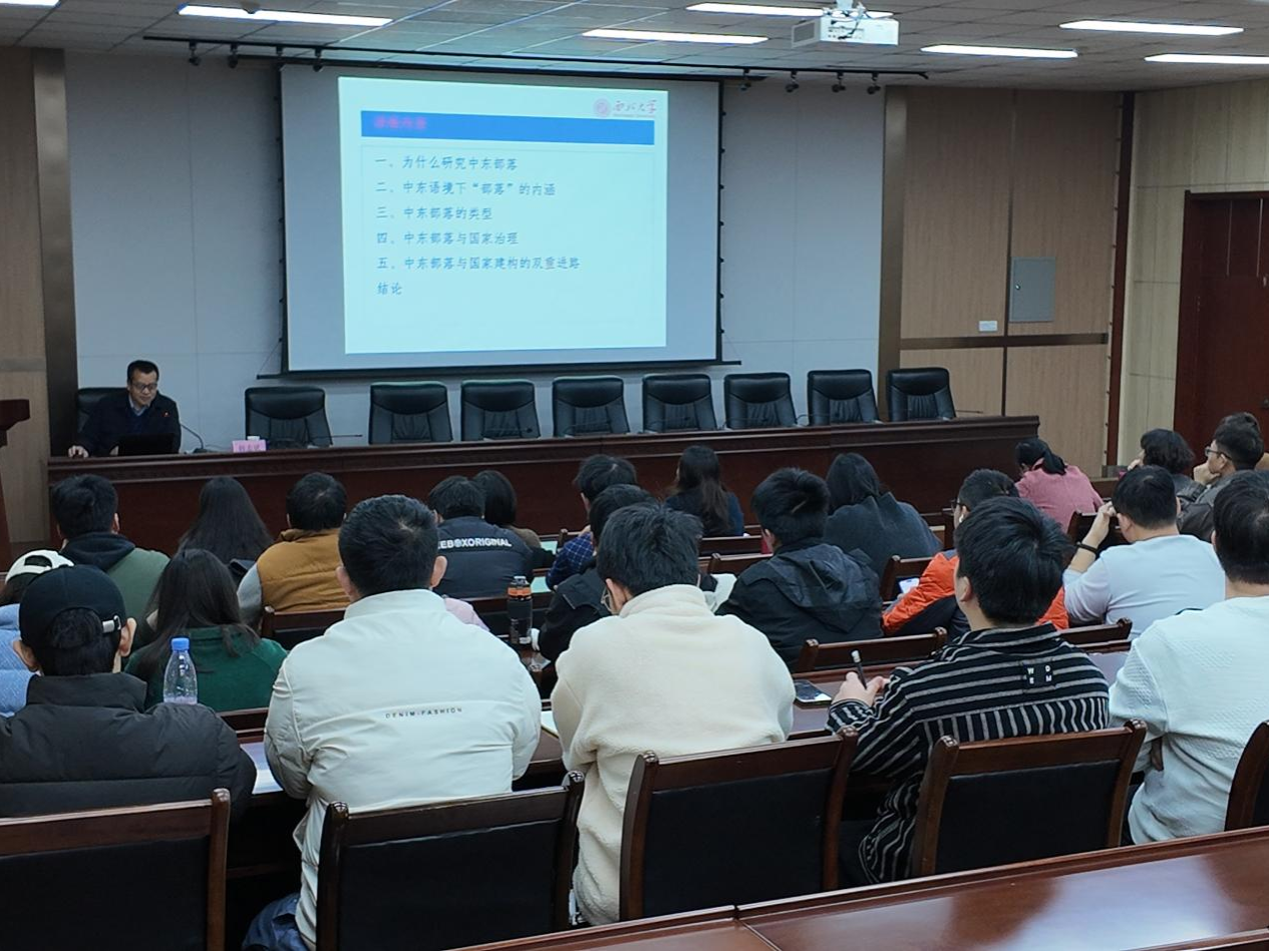 12月4日上午,區(qū)域國別研究院邀請西北大學(xué)韓志斌教授在雁塔校區(qū)會(huì)議中心第五會(huì)議室作了題為《中東部落:概念認(rèn)知、類型演化與社會(huì)治理》的學(xué)術(shù)講座。講座由區(qū)域國別研究院執(zhí)行院長劉輝主持,研究院專兼職研究人員及工程技術(shù)與管理人員國際化能力培訓(xùn)班學(xué)員共同聆聽了報(bào)告。