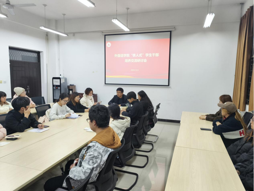 為進(jìn)一步貫徹落實(shí)學(xué)校第三次黨代會(huì)精神,圍繞學(xué)校中心工作,引領(lǐng)學(xué)生干部繼承和發(fā)揚(yáng)光榮傳統(tǒng),弘揚(yáng)鐵人精神,激勵(lì)學(xué)生干部增強(qiáng)責(zé)任感和使命感,充分發(fā)揮學(xué)生干部在工作中的積極性,12月3日、5日,外國(guó)語學(xué)院開展培養(yǎng)“鐵人式”學(xué)生干部交流研討活動(dòng),學(xué)院黨委副書記邱嶺,院團(tuán)委、學(xué)生會(huì)學(xué)生干部共計(jì)30余人參加活動(dòng),活動(dòng)由學(xué)院學(xué)生工作辦公室副主任、團(tuán)委書記陳浩主持。