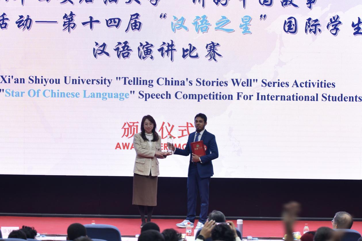 經(jīng)過激烈的角逐,來自孟加拉國的哈桑同學(xué)憑借其出色的演講內(nèi)容和表現(xiàn),榮獲一等獎(jiǎng)。申李平安、簡愛克、伊卡三名同學(xué)獲得二等獎(jiǎng),韓沐恩、曾美麗、七人組合、月亮及拉德蒙五組選手獲得了三等獎(jiǎng)。學(xué)院院長董皓、副院長秦璟及特邀評(píng)委代表許延浪教授分別為獲獎(jiǎng)選手頒發(fā)了獎(jiǎng)杯和獲獎(jiǎng)證書。特邀評(píng)委代表柯卓英教授對(duì)比賽進(jìn)行了總結(jié)點(diǎn)評(píng)。