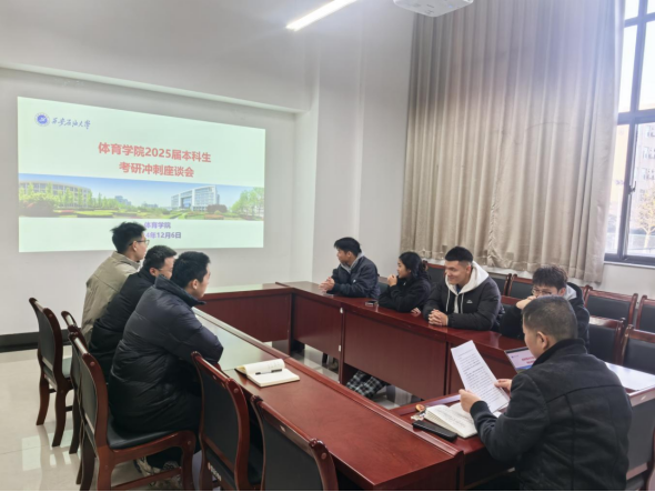 在距離2025年全國研究生入學(xué)考試半個月之際,為進一步助力2025屆考研學(xué)子全力沖刺,12月6日上午,體育學(xué)院在鄠邑校區(qū)東操場208會議室召開考研沖刺學(xué)生座談會。體育學(xué)院黨總支書記茍毅飛出席會議并給學(xué)生予以考研沖刺指導(dǎo)與鼓勵。