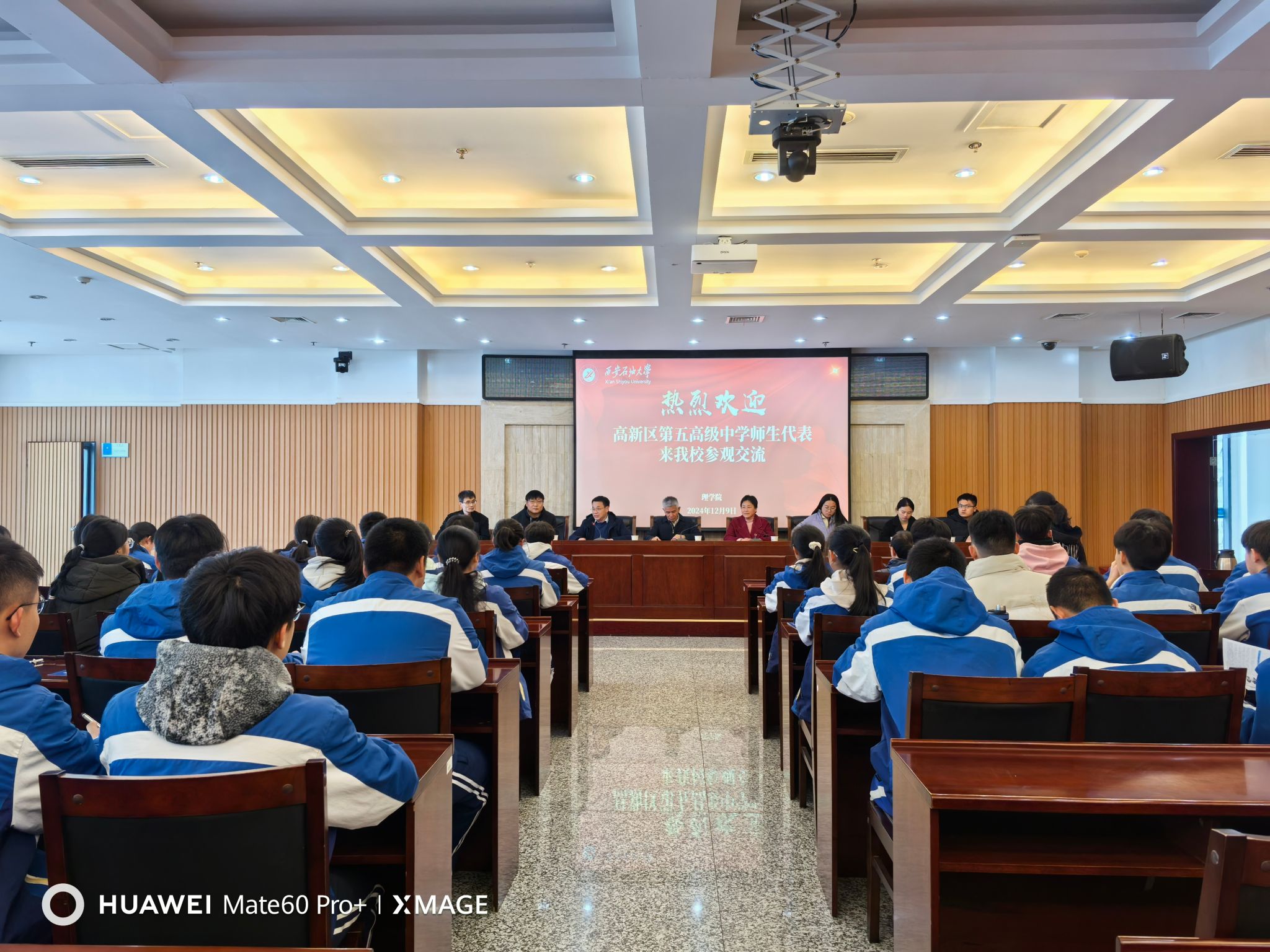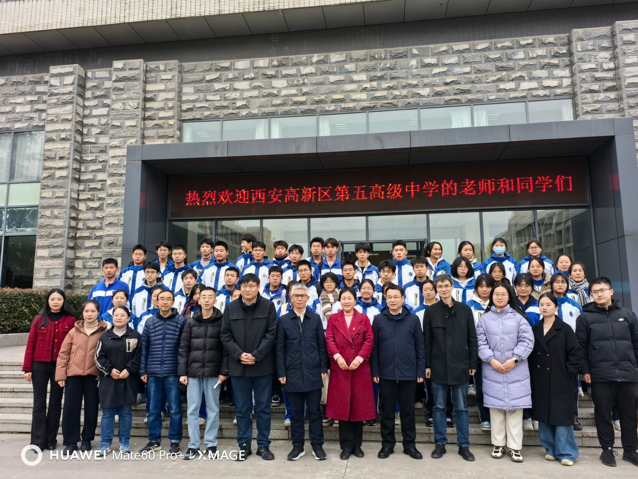 2024年12月9日下午,我校優(yōu)秀生源基地——西安高新區(qū)第五高級中學(xué)受邀來我校開展研學(xué)交流活動,該校副校長白海燕帶領(lǐng)師生代表50余人參加活動。理學(xué)院招生宣傳工作組代表學(xué)校接待五高師生并在鄠邑校區(qū)第一會議室舉行歡迎儀式,理學(xué)院副院長陳國祥代表學(xué)校及學(xué)院對五高師生代表表示熱烈歡迎,并介紹了研學(xué)活動行程。我校教務(wù)處處長時保宏、材料科學(xué)與工程學(xué)院黨委副書記兼教務(wù)處招生辦公室主任屈敏佳、理學(xué)院黨委副書記楊富民及理學(xué)院教師代表出席活動。