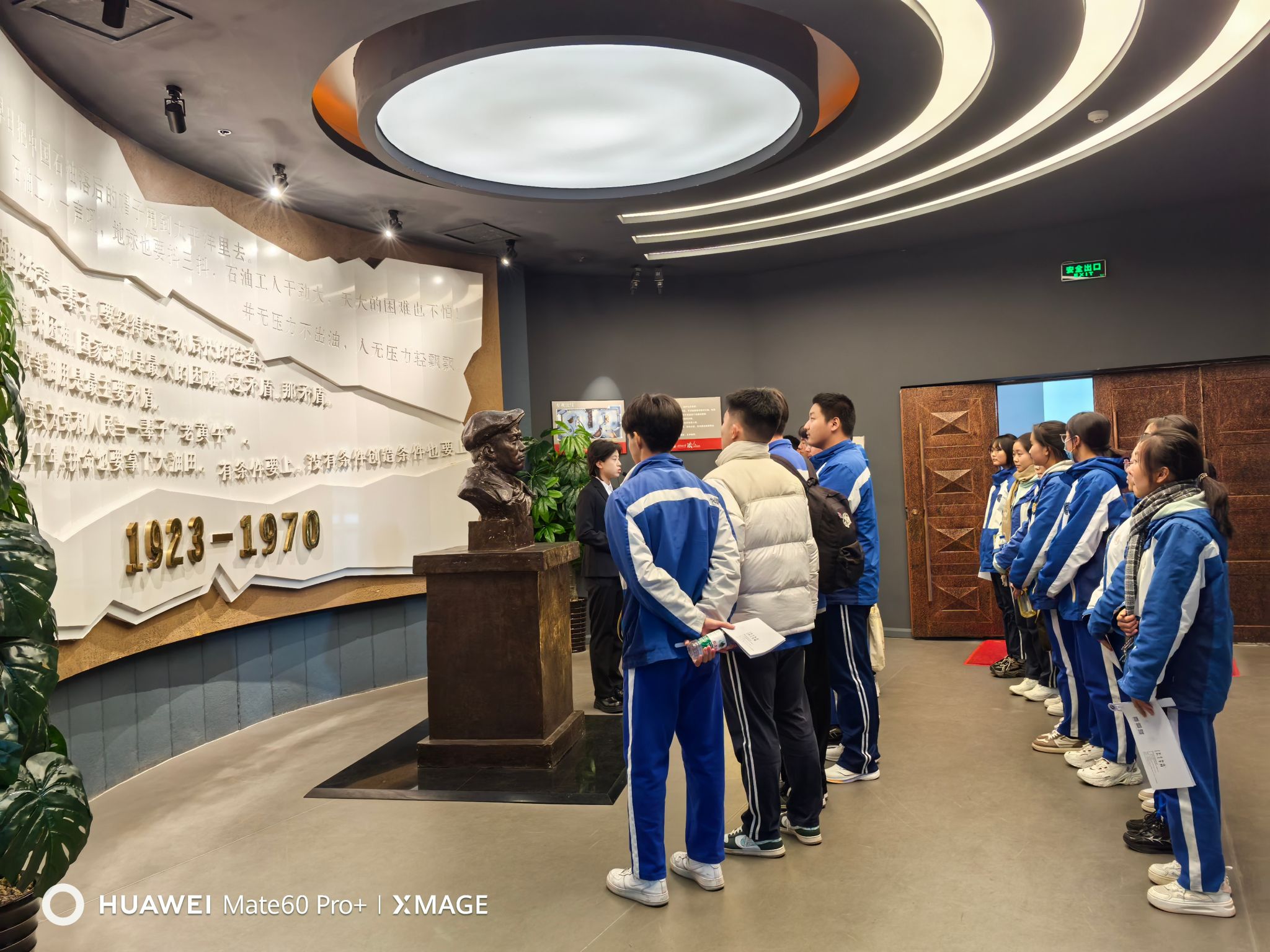 研學(xué)活動首站來到鐵人紀(jì)念館和校史館,在講解員們的引領(lǐng)下,五高師生代表分為兩組進(jìn)行了參觀。在鐵人紀(jì)念館,通過講解員細(xì)致的講解,結(jié)合一幅幅珍貴的照片、一件件實物展品,五高師生深切感受到鐵人47年的不凡人生歷程,深刻領(lǐng)悟了鐵人精神的內(nèi)涵。在校史館,跟隨講解員的步伐,五高師生認(rèn)真聆聽了我校的建設(shè)發(fā)展歷程,透過一個個展板,一件件歷史實物,大家學(xué)習(xí)了先輩們篳路藍(lán)縷艱苦辦學(xué)的奮斗精神、專家學(xué)者潛心育人的優(yōu)秀事跡和畢業(yè)生扎根祖國大地回饋社會的愛國情懷,深切感受到我校的校園文化和學(xué)習(xí)氛圍,也激發(fā)起內(nèi)心對大學(xué)生活的向往和憧憬。