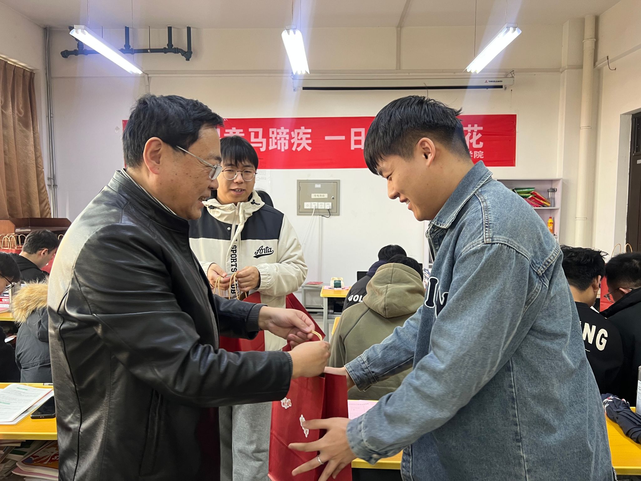 在2025年全國碩士研究生招生考試到來之際,為幫助考研學生堅定考研信心,緩解備考壓力,激發(fā)前進動力,學院黨委書記馬行天、2021級輔導員李佩琦于2024年12月16日攜暖心考研大禮包走訪考研自習室,慰問考研學子。
