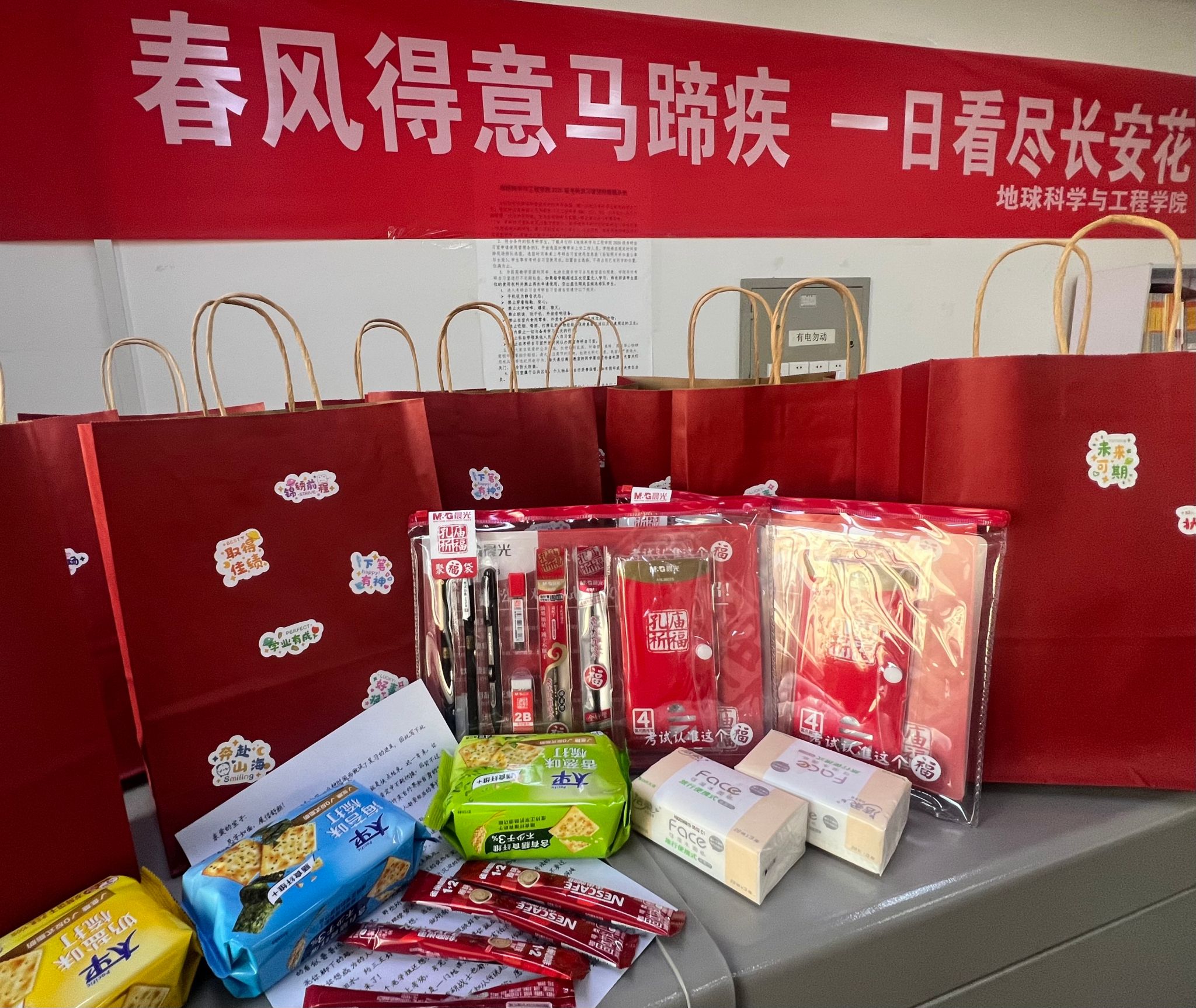 在走訪過程中,馬書記親切詢問了考研學子的備考情況,關(guān)心學生身體及心理狀況,叮囑同學們在最后沖刺階段一定要調(diào)整心態(tài),勞逸結(jié)合,用堅定的信心和從容的態(tài)度迎接考試,學院始終在背后支持每一位考研學子。輔導員李佩琦老師為每一位考研學子準備了一封信,希望所有日月兼程逐夢而上的學子,能夠不負努力,不畏考驗,讓理想的風吹進現(xiàn)實,讓沉淀的知識散作星光,照亮腳下的路。同學們紛紛表示會牢記叮囑,不負期望,堅持到底,用最好的狀態(tài)迎接考試,全力以赴向夢想沖刺!