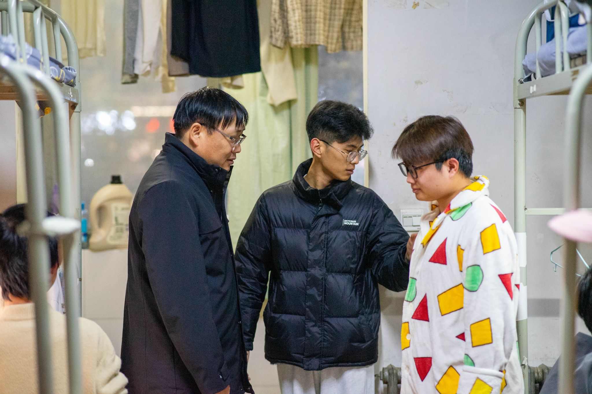 11月25日,理學院副書記楊富民、2022級以及2023級輔導員李猛共同走訪了學院學生宿舍,與學生面對面交流,了解他們的生活和學習情況,并重點檢查了宿舍的安全隱患。楊富民強調(diào)了宿舍安全的重要性,提醒學生們要時刻保持警惕,注意用電安全、防火防盜等。同時,他還鼓勵學生們要相互關心、相互幫助,共同維護宿舍的安全和穩(wěn)定。