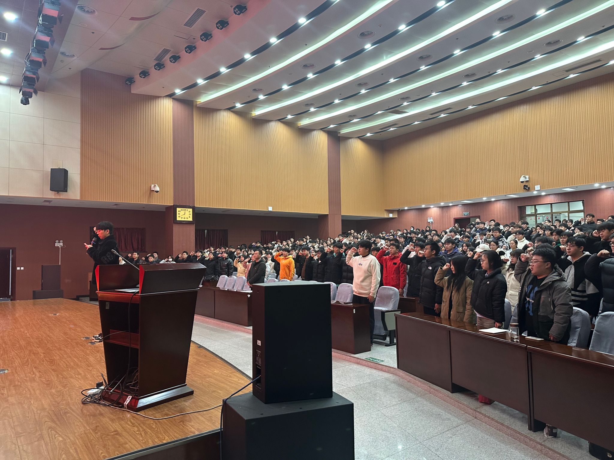 為深入落實(shí)貫徹黨的二十大精神以及習(xí)近平新時(shí)代中國(guó)特色社會(huì)主義思想,貫徹落實(shí)習(xí)近平總書記關(guān)于新時(shí)代新征程加強(qiáng)和改進(jìn)團(tuán)員隊(duì)伍建設(shè)工作意見(jiàn)的重要指示精神,激發(fā)我校廣大青年學(xué)生的愛(ài)黨、愛(ài)國(guó)熱情,12月18日中午,校團(tuán)委于鄠邑校區(qū)弘石報(bào)告廳開展2024年下半年新發(fā)展團(tuán)員入團(tuán)儀式。校團(tuán)委副書記王軍策,團(tuán)委組織部工作人員及338名新發(fā)展團(tuán)員代表參加本次儀式,儀式由王澤文主持。