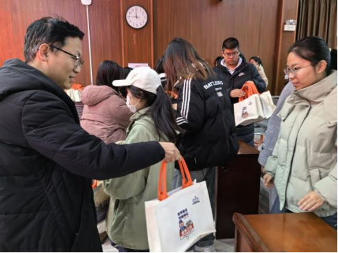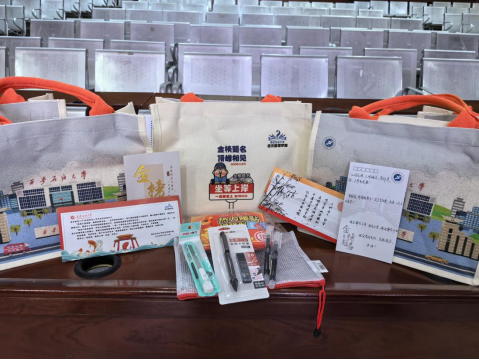 活動現(xiàn)場,學(xué)院為同學(xué)們送上了精心準(zhǔn)備的考研大禮包。每一份禮物都承載著深深的祝福和期待。禮包中包含了考試專用文具、驅(qū)除寒冷的暖寶寶、學(xué)院設(shè)計的手提袋等物品。這些禮物不僅體現(xiàn)了學(xué)院對同學(xué)們的深切關(guān)愛和美好祝愿,更激發(fā)了同學(xué)們備考的信心和動力。同學(xué)們紛紛表示深受感動與鼓舞,表示一定會牢記囑托,以最好的狀態(tài)全力備考。