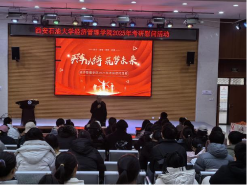 在考研沖刺階段,為鼓舞學(xué)生士氣、緩解備考壓力。12月18日,經(jīng)濟管理學(xué)院在崇文樓118就業(yè)指導(dǎo)中心多功能廳舉行了2025屆考研學(xué)生慰問活動。學(xué)院黨委副書記楊生強、學(xué)生工作辦公室主任李博文、張碩以及2025屆輔導(dǎo)員劉清共同參加慰問活動,活動由輔導(dǎo)員劉清主持。