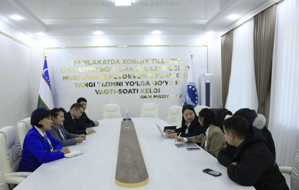 與安集延外國語學(xué)院副校長Elbek Kurbanov、外事部門主要負(fù)責(zé)人和安集延州政府外事專員會(huì)談