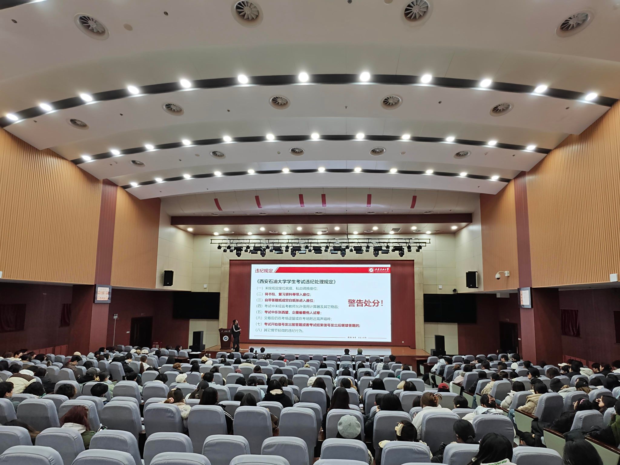 為進(jìn)一步強(qiáng)化學(xué)生的誠(chéng)信意識(shí),嚴(yán)肅考風(fēng)考紀(jì),同時(shí)做好學(xué)生節(jié)前假前教育,12月30日上午,人文學(xué)院在鄠邑校區(qū)弘石學(xué)術(shù)報(bào)告廳召開(kāi)2023級(jí)考試誠(chéng)信教育暨節(jié)前假前年級(jí)大會(huì),2023級(jí)輔導(dǎo)員王凱杰主持,2023級(jí)全體本科生參會(huì)。