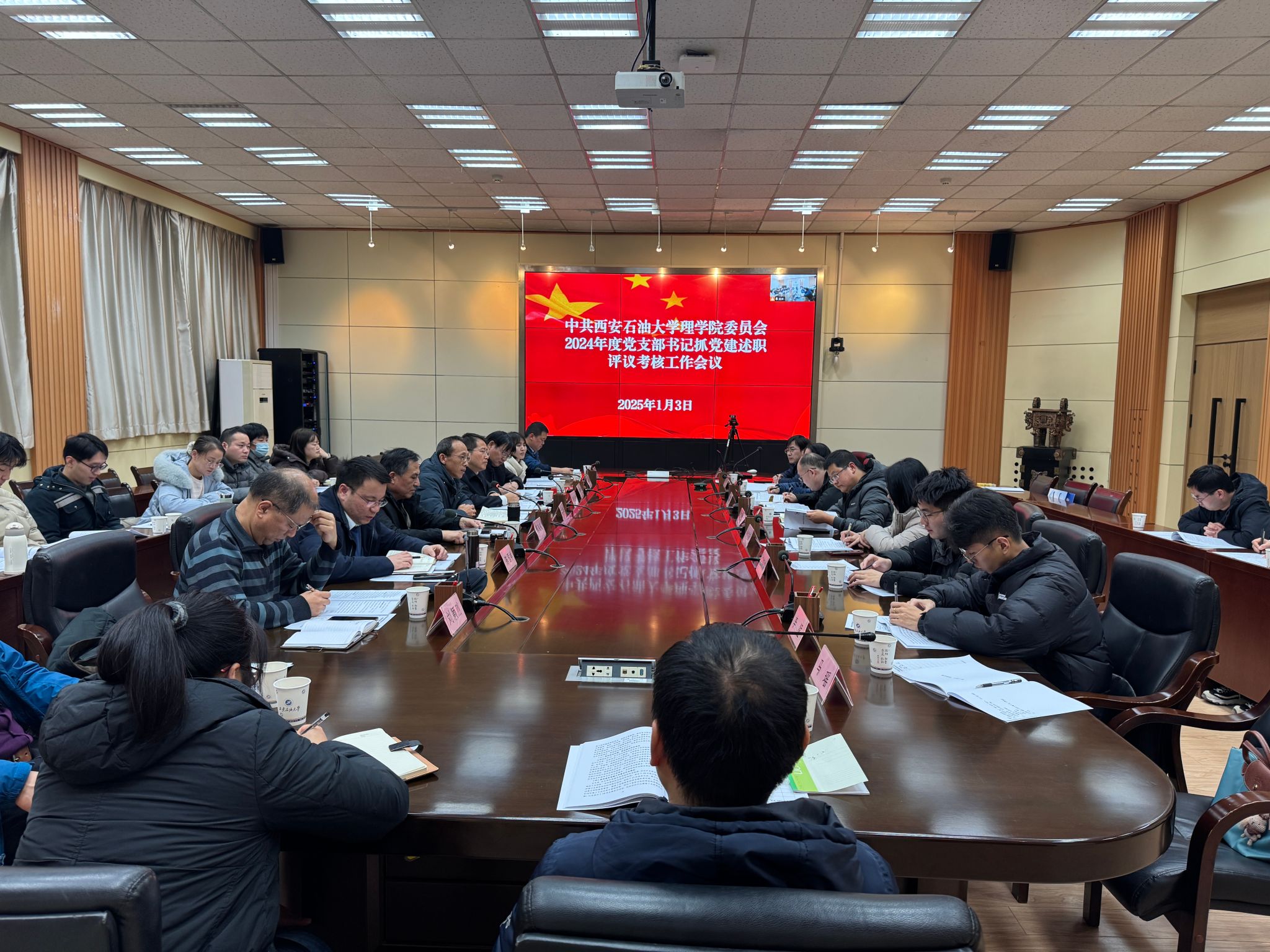 2025年1月3日下午,理學(xué)院在雁塔校區(qū)西階會議中心第二會議室召開2024年度黨支部書記抓黨建述職評議考核工作會議,校黨委委員、副校長張君濤出席會議并進(jìn)行指導(dǎo)。理學(xué)院黨委委員、領(lǐng)導(dǎo)班子成員、教研室主任、各黨支部書記、支部委員和組織員參加會議。鄠邑校區(qū)學(xué)生黨支部委員通過騰訊會議線上參會。