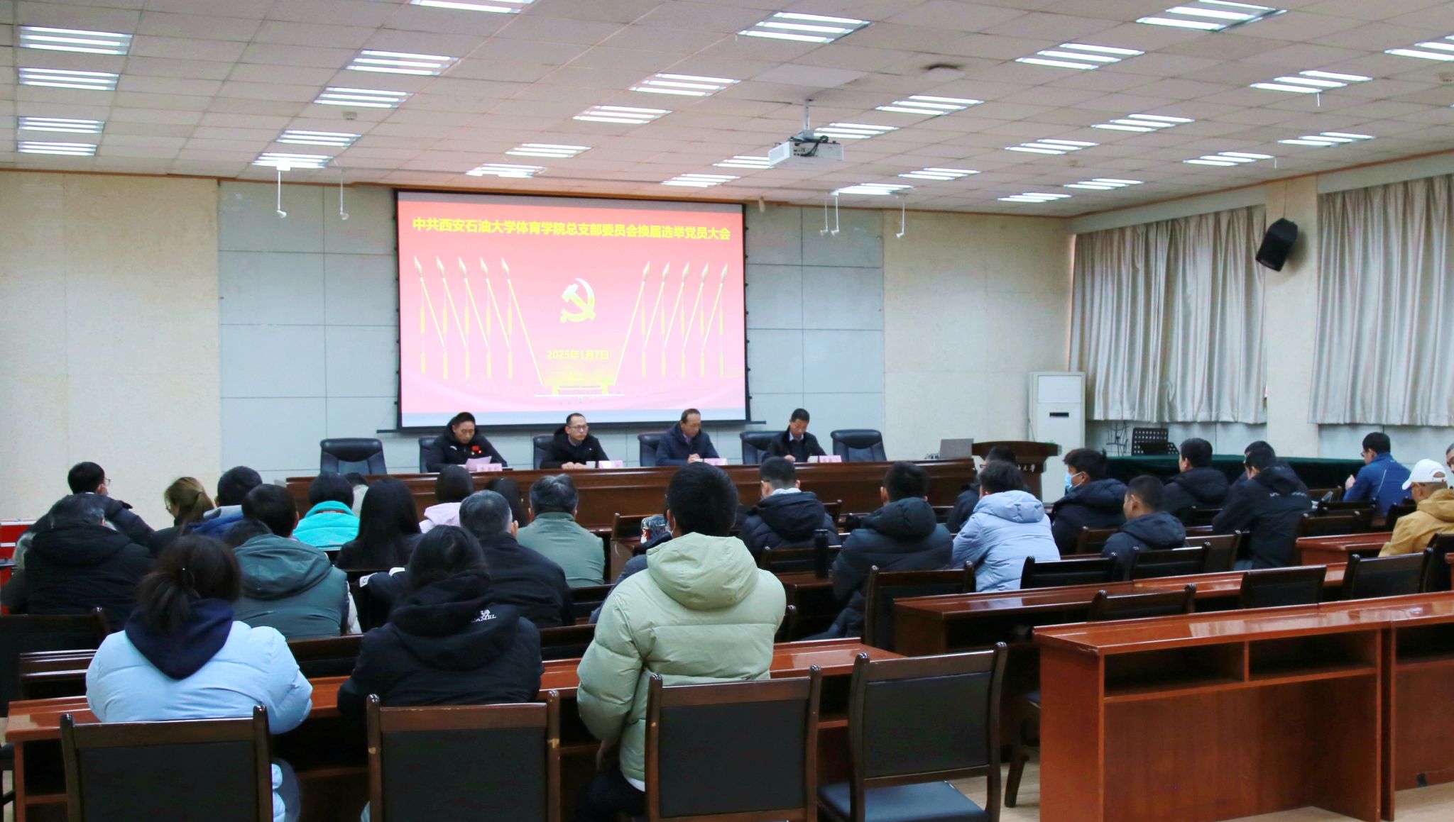 1月7日下午,中共西安石油大學體育學院總支部委員會換屆選舉黨員大會在雁塔校區(qū)第三會議室隆重召開。校黨委委員、副校長張君濤出席大會并講話。校黨委組織部副部長張歡到會指導。學院全體師生黨員同志參加大會。大會由學院院長李壽邦主持。