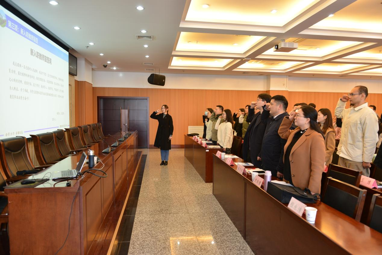 武曉朦就部門情況、新入職教師崗前培訓整體情況及課程情況進行了簡要介紹。新入職教師代表、石油工程學院王瑩潔老師帶領全體參會教師進行了宣誓,進一步增強了新入職教師的職業(yè)使命感與責任感。