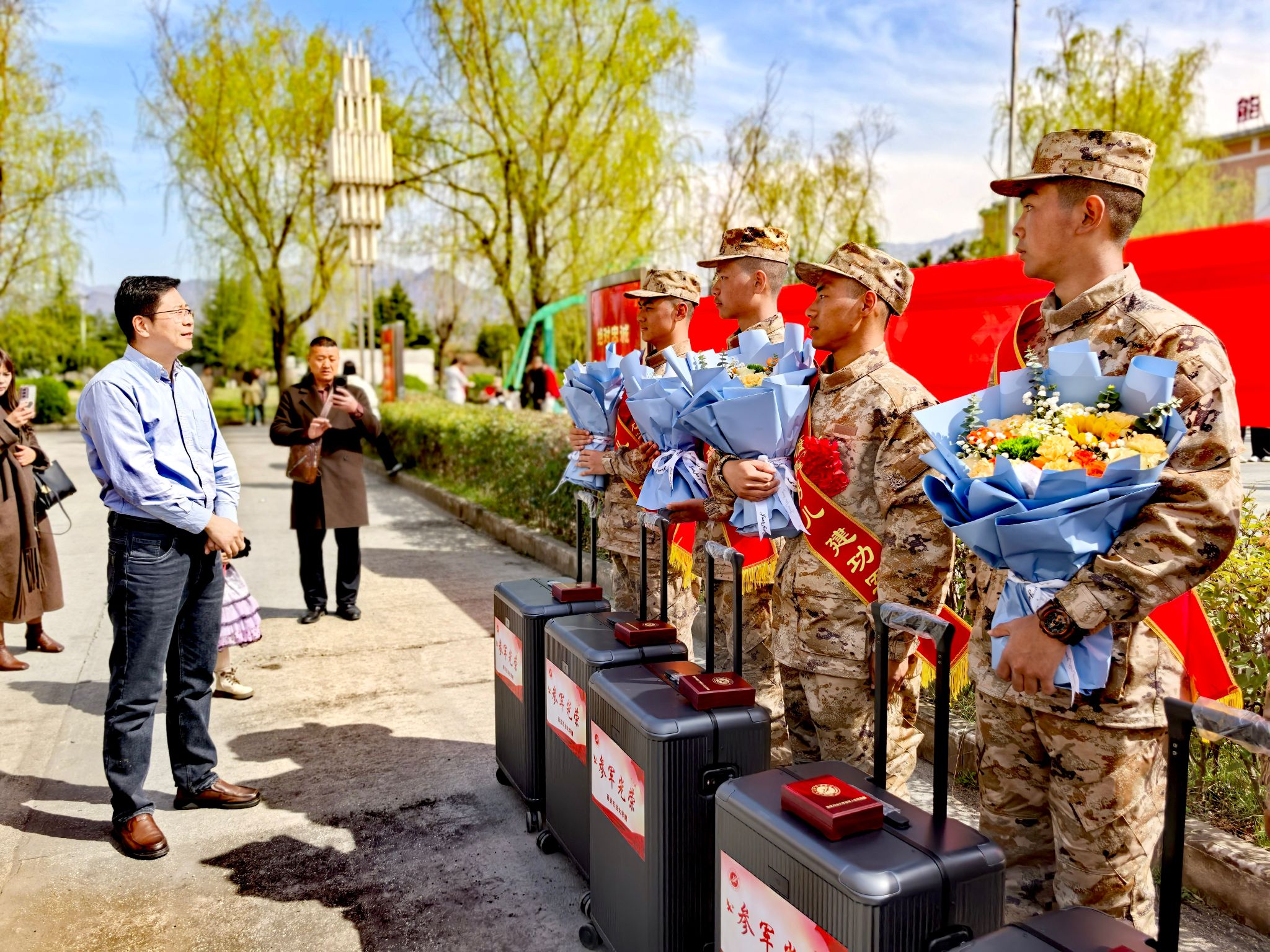 3月16日下午,雁塔區(qū)2025年上半年新兵入伍歡送大會(huì)在雁塔區(qū)新兵役前教育訓(xùn)練基地隆重舉行。學(xué)生工作部部長(zhǎng)、武裝部部長(zhǎng)王亮,學(xué)生工作部副部長(zhǎng)、武裝部副部長(zhǎng)馬小剛,武裝部辦公室主任范俊鵬及部分輔導(dǎo)員代表出席活動(dòng),為6名通過(guò)嚴(yán)格選拔的入伍學(xué)子壯行。