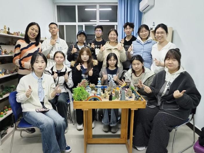 工作研討后,團(tuán)隊成員齊聚崇文樓 447(沙盤創(chuàng)作室),在老師的帶領(lǐng)下,進(jìn)行了團(tuán)體沙盤活動。成員們積極參與創(chuàng)作和體驗,在活動中加深了理解,增進(jìn)了溝通,團(tuán)隊更加向心凝聚。