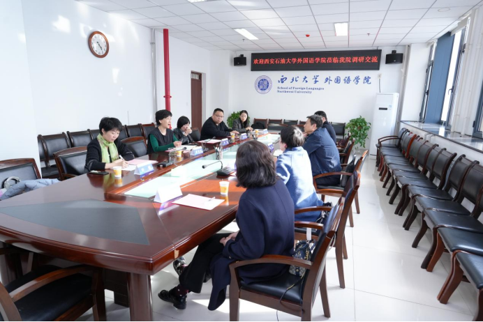 在專題研討環(huán)節(jié),西北大學(xué)外國(guó)語(yǔ)學(xué)院副院長(zhǎng)李蓂、院長(zhǎng)助理許娜、俄語(yǔ)系主任梅子霖及大學(xué)英語(yǔ)教研二部主任李艷與我院調(diào)研組就本科人才培養(yǎng)體系展開深度交流。雙方圍繞學(xué)科建設(shè)特色、人才培養(yǎng)方案制定、課程思政創(chuàng)新、跨文化交流、區(qū)域國(guó)別研究、大學(xué)英語(yǔ)課程改革及教師團(tuán)隊(duì)建設(shè)等核心議題展開深入交流,共謀外語(yǔ)教育高質(zhì)量發(fā)展新策略。