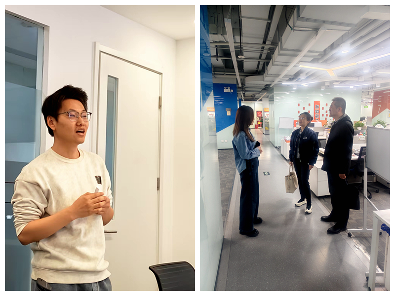 最后,陳紫怡、張?jiān)M鷰ьI(lǐng)師生參觀了猿輔導(dǎo)西安分公司工作區(qū),讓同學(xué)們沉浸式體驗(yàn)教育科技行業(yè)的工作狀態(tài),走進(jìn)企業(yè)一線,提前熟悉就業(yè)崗位環(huán)境。