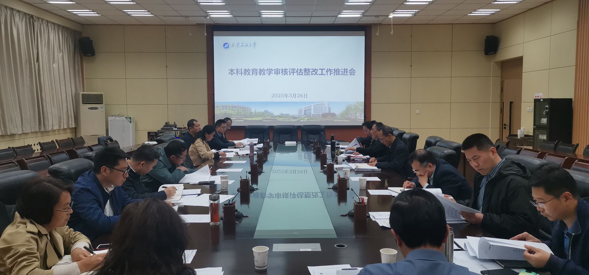 會上,高教研究與評估督導(dǎo)中心相關(guān)負(fù)責(zé)人通報了陜西省教育廳召開的陜西普通高校本科教育教學(xué)審核評估座談會暨2025年本科教學(xué)重點工作部署會會議精神,對學(xué)校審核評估整改一年期檢查準(zhǔn)備工作進(jìn)行了說明。審核評估整改工作各主辦單位相關(guān)負(fù)責(zé)人匯報了近期整改情況。