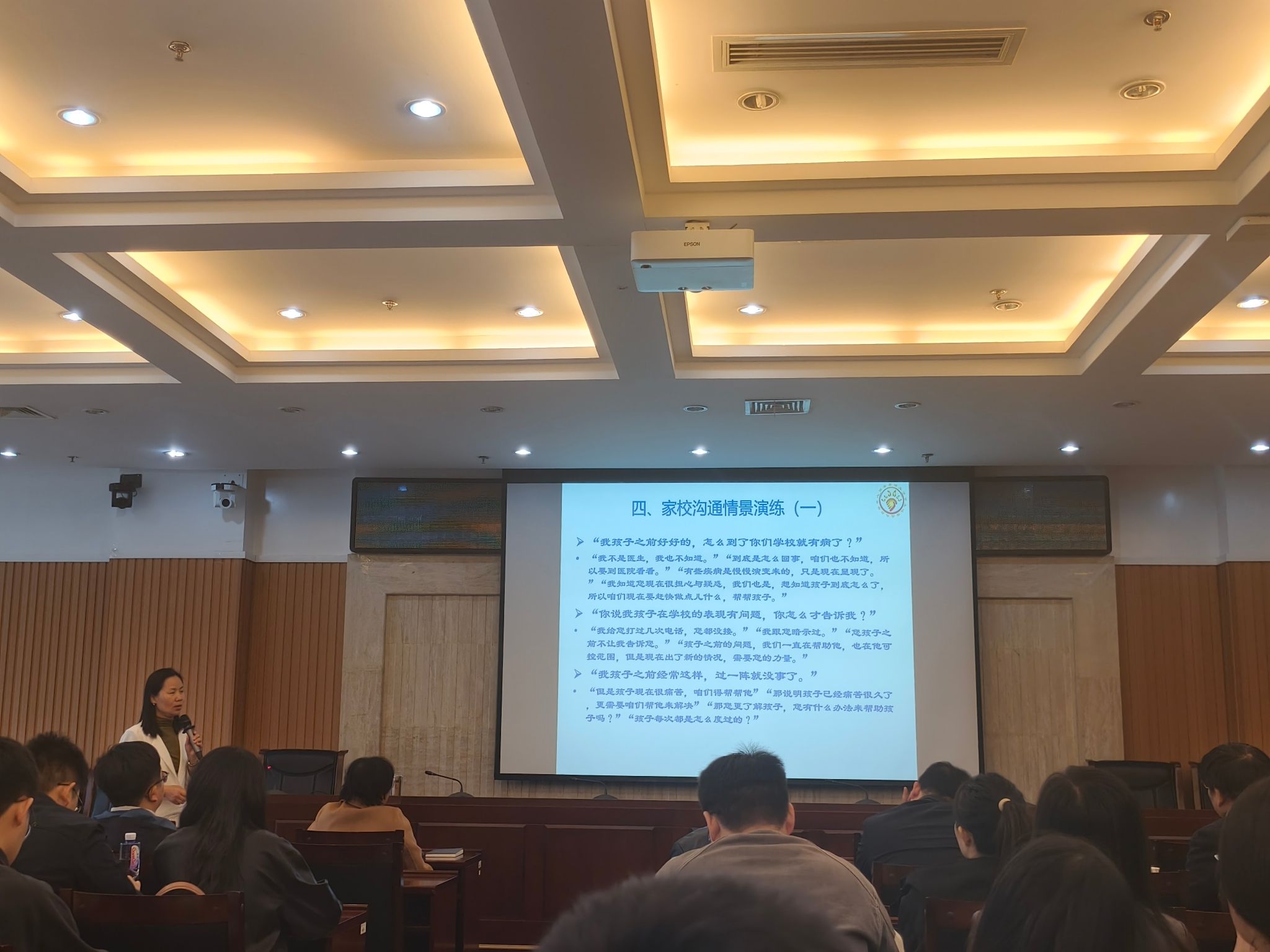培訓(xùn)開始,肖瓊帶領(lǐng)全體學(xué)工干部進(jìn)行了“驚猴縮脖”和“背后七顛百病消”的小活動,讓大家直觀地感受了鍛煉中蘊(yùn)含的情緒變化,為大家?guī)砹巳碌捏w驗(yàn)。然后肖瓊從大學(xué)生心理危機(jī)界定、背景知識、以聯(lián)盟式溝通促質(zhì)量提升、高校溝通情景演練等四個方面深入淺出地介紹高校學(xué)生心理工作中的關(guān)系難題、法律保障、家校溝通的原則、流程、話術(shù)和寶貴經(jīng)驗(yàn)等。培訓(xùn)通過一個個鮮活的案例,既有理論的解讀,也有實(shí)踐的分享,對于提升我校學(xué)工干部的心理危機(jī)預(yù)防和干預(yù)能力,做好新時代大學(xué)生的日常教育管理與服務(wù)工作具有現(xiàn)實(shí)的指導(dǎo)意義。