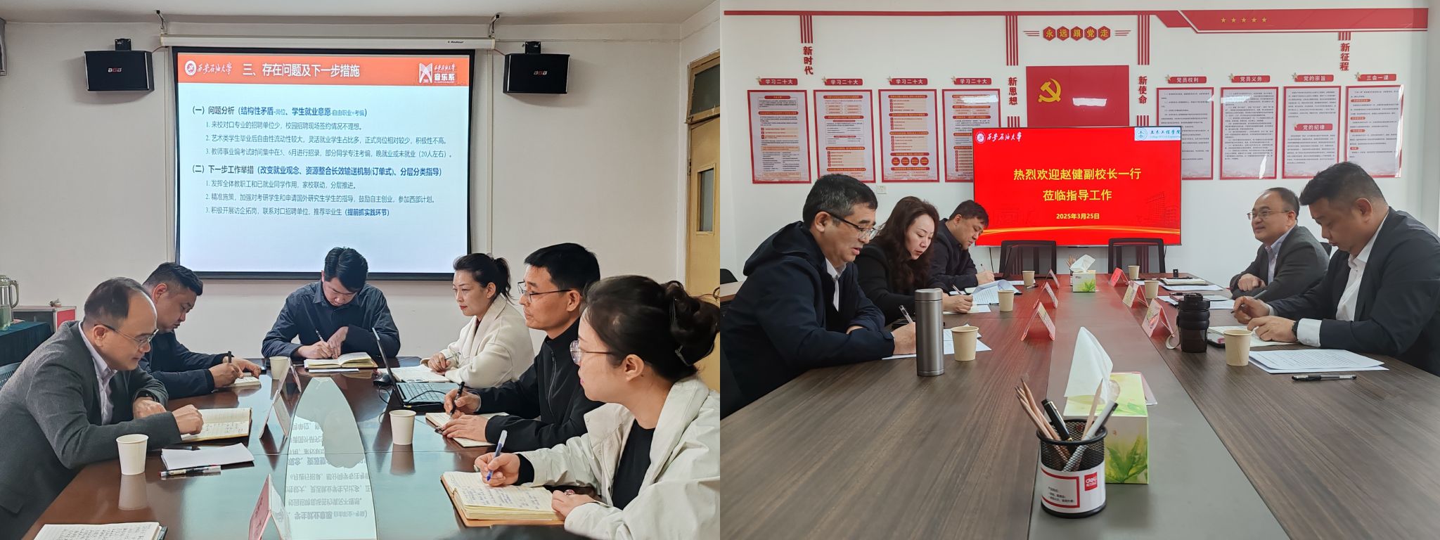 為深入貫徹落實教育部、省教育廳和學(xué)校黨委關(guān)于做好畢業(yè)生就業(yè)工作的指示要求,全力推進(jìn)2025屆畢業(yè)生就業(yè)進(jìn)程,3月20—26日,校黨委委員、副校長趙健深入各院(系)走訪調(diào)研2025屆畢業(yè)生就業(yè)考研工作。學(xué)生工作部(處)(就業(yè)創(chuàng)業(yè)指導(dǎo)中心)、研究生工作部相關(guān)負(fù)責(zé)同志陪同。