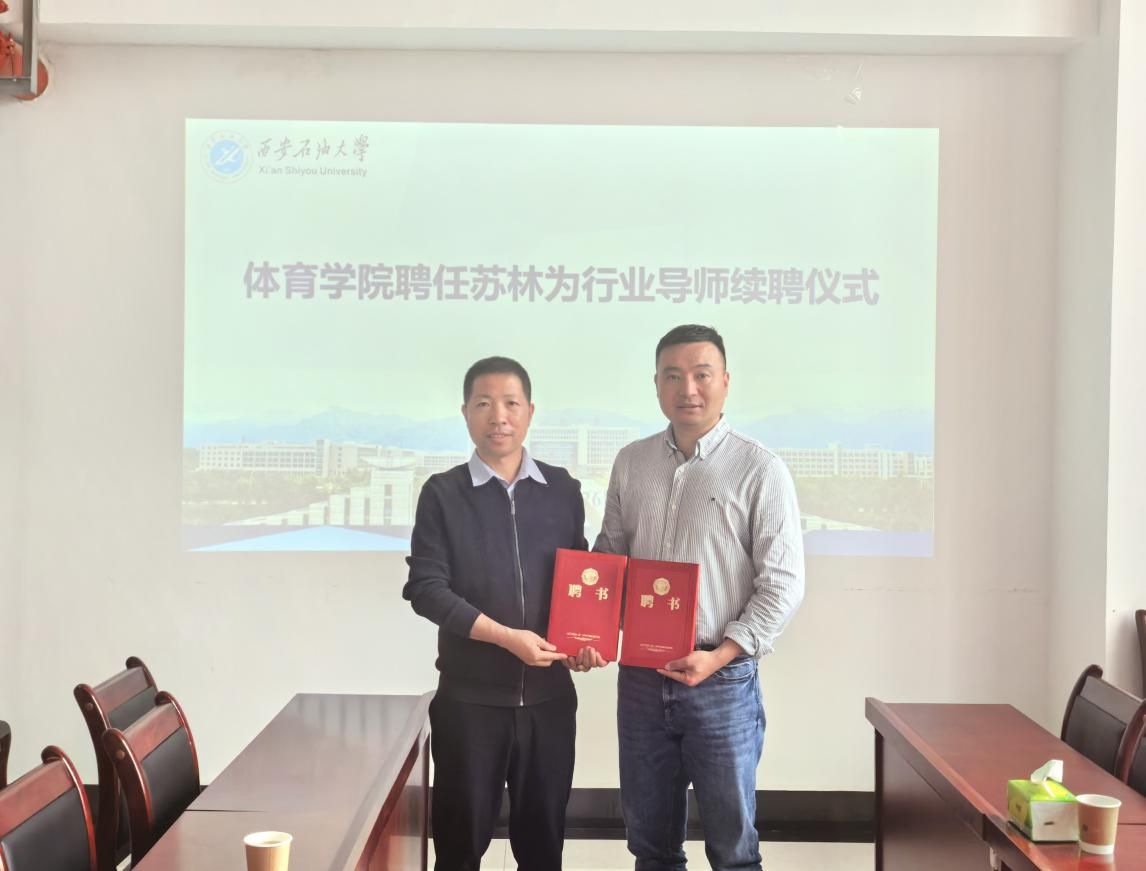 講座開(kāi)始前,體育學(xué)院在鄠邑校區(qū)東體育場(chǎng)208會(huì)議室舉行了續(xù)聘儀式,繼續(xù)聘任蘇林院長(zhǎng)為社會(huì)體育指導(dǎo)與管理專業(yè)行業(yè)導(dǎo)師、體育碩士專業(yè)學(xué)位研究生校外導(dǎo)師。