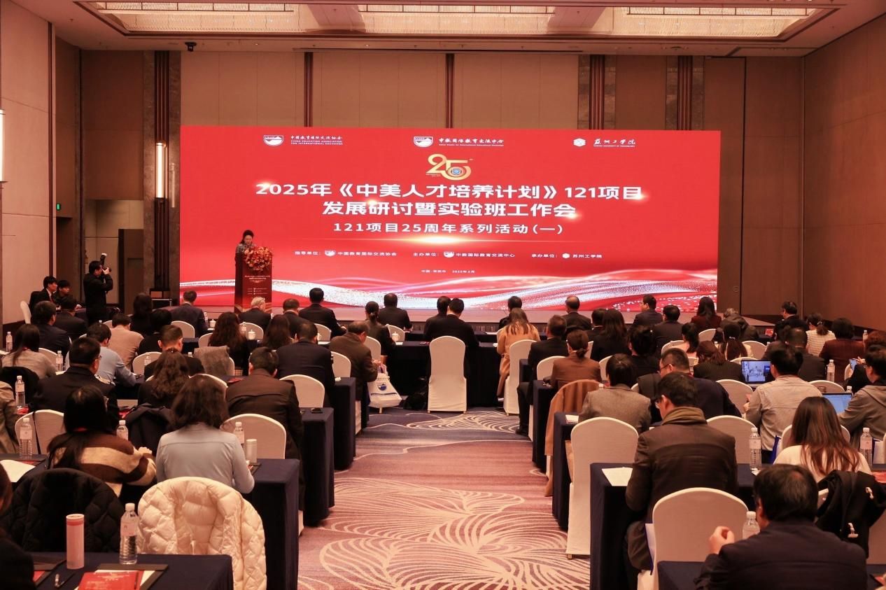 3月30日至4月1日,2025年《中美人才培養(yǎng)計劃》121項目發(fā)展研討暨實驗班工作會在江蘇舉行。本次會議由中國教育國際交流協(xié)會指導(dǎo),中教國際教育交流中心主辦,全國近40余所高校150余名代表參會。我校教務(wù)處副處長馬加傳、國際合作與交流處副處長顏庭星及121項目專員參加會議。