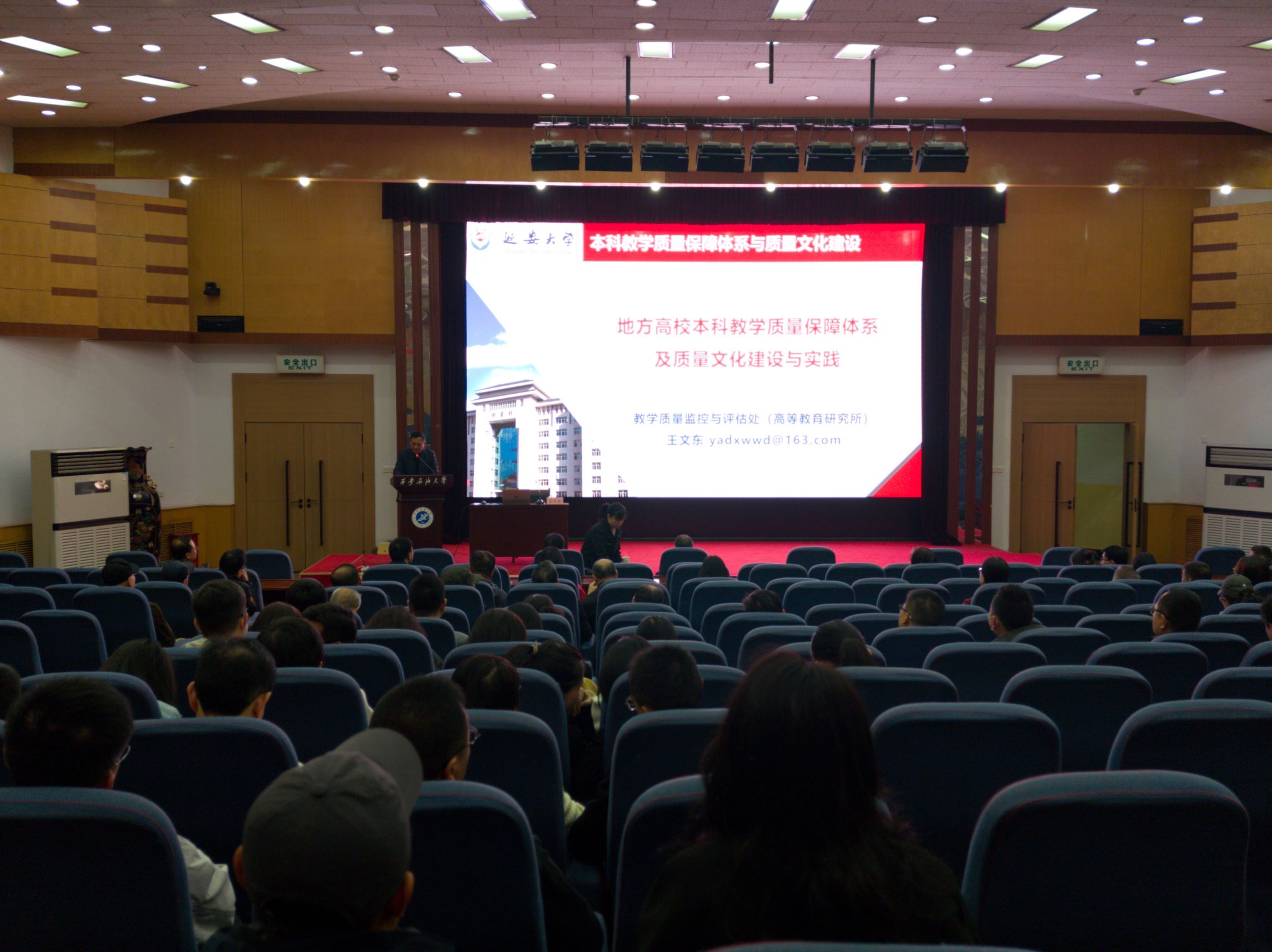 為扎實做好審核評估整改工作,推進學(xué)校質(zhì)量保障體系和質(zhì)量文化建設(shè)。4月3日上午,學(xué)校在雁塔校區(qū)學(xué)術(shù)報告廳舉辦專題報告會,邀請延安大學(xué)教學(xué)質(zhì)量監(jiān)控與評估處處長王文東教授作題為“地方高校本科教學(xué)質(zhì)量保障體系及質(zhì)量文化建設(shè)與實踐”的報告。報告會由高教研究與評估督導(dǎo)中心主任傅海威主任主持,張君濤副校長出席報告會,校、院系兩級教學(xué)督導(dǎo)副組長,教務(wù)部全體處科級干部,黨委宣傳部、發(fā)展規(guī)劃處負責(zé)人,各院(系)教學(xué)副院長、系(教研室)主任、教學(xué)辦公室主任參加了報告會。