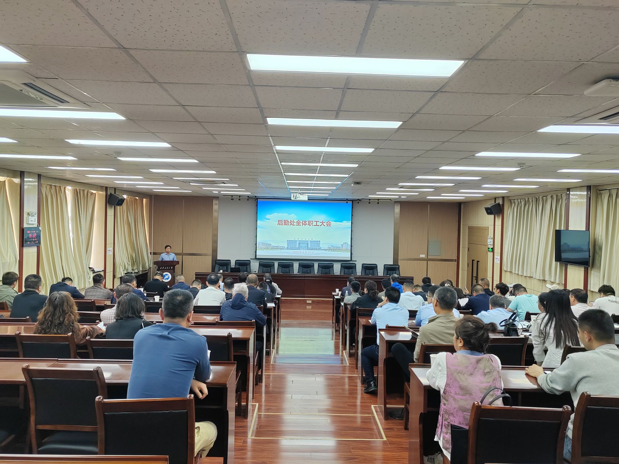 4月14日下午,后勤處在雁塔校區(qū)召開(kāi)了后勤處全體職工大會(huì),對(duì)2025年工作進(jìn)行了安排部署。副校長(zhǎng)張驍勇參會(huì)并對(duì)后勤處開(kāi)展工作提出明確要求。