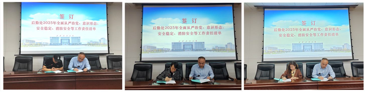 會(huì)上,后勤處領(lǐng)導(dǎo)班子逐一與所分管的各中心(辦)負(fù)責(zé)人簽訂了《后勤處2025年全面從嚴(yán)治黨、意識(shí)形態(tài)、安全穩(wěn)定、消防安全等工作責(zé)任清單》,要求緊密結(jié)合全面從嚴(yán)治黨工作、后勤管理集中整治工作,進(jìn)行壓力逐級(jí)傳導(dǎo),層層夯實(shí)責(zé)任,確保責(zé)任到人。