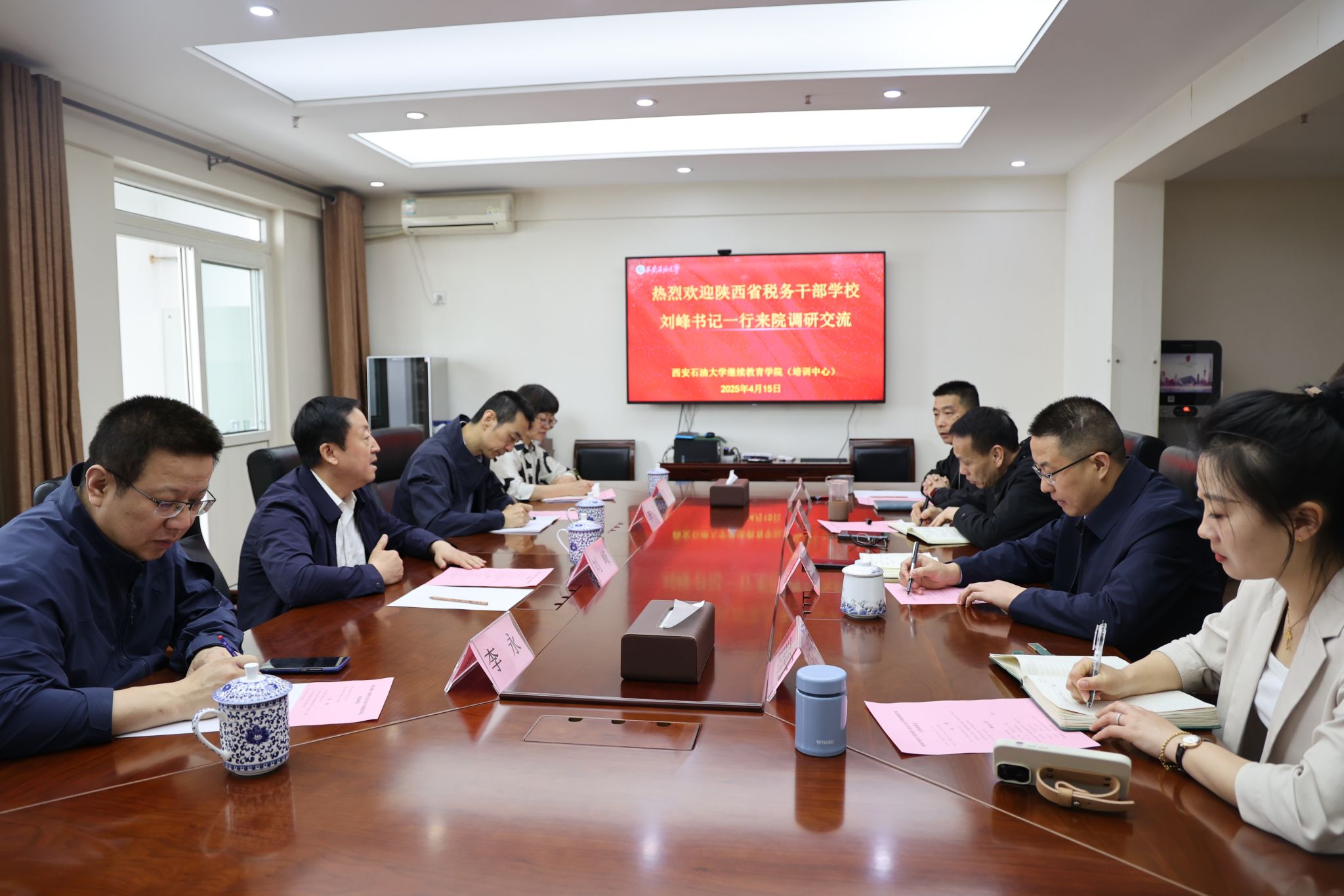 4月15日上午,陜西省稅務(wù)干部學(xué)校(以下簡稱“省稅?!保h組書記、校長劉峰一行四人前來我校調(diào)研交流。繼續(xù)教育學(xué)院黨總支書記張凌寒、院長林紅先參加了座談。