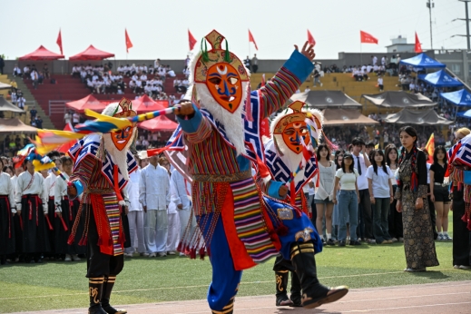 本屆運(yùn)動(dòng)會(huì)開幕式上的藏戲表演,將藏戲這一獨(dú)特的文化瑰寶展示在全校師生面前。廣大師生通過觀看開幕式表演,一方面,讓遠(yuǎn)在他鄉(xiāng)的學(xué)子感受到了家鄉(xiāng)的溫暖,使其更加堅(jiān)定了傳承和弘揚(yáng)民族文化的決心,也讓更多的人了解藏戲、喜愛藏戲,讓這一古老的藝術(shù)在新時(shí)代煥發(fā)出新的生機(jī)與活力。另一方面,讓廣大師生了解到了民族團(tuán)結(jié)的重要性,感受到了民族文化的多樣性,增強(qiáng)了民族團(tuán)結(jié)意識(shí)和文化自信,是一次深刻的民族團(tuán)結(jié)教育實(shí)踐。