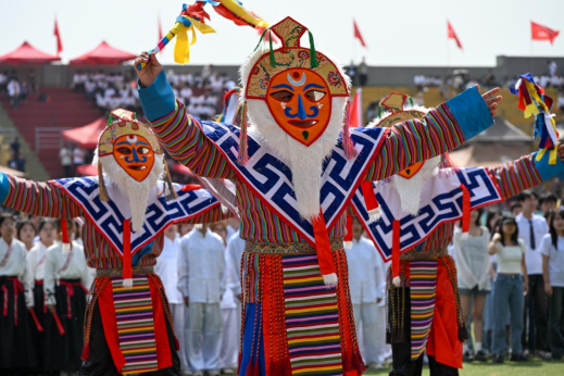 2025年4月24日上午,我校第四十四屆田徑運(yùn)動(dòng)會(huì)在鄠邑校區(qū)東體育場盛大開幕。開幕式上,由體育學(xué)院編排的大型音樂團(tuán)舞蹈《龍吟華夏》之藏戲表演《扎西雪巴》,以獨(dú)特的創(chuàng)意編排,將藏戲舞蹈融入其中,使藏戲從雪域高原走進(jìn)大學(xué)校園,用藝術(shù)語言為師生打造了一隅綺麗的視聽享受空間,呈現(xiàn)出多彩多姿的中華文化畫卷,有形有感有效鑄牢中華民族共同體意識(shí)。