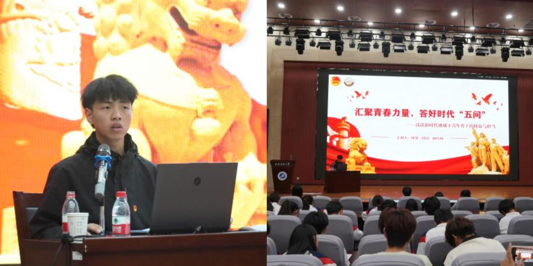 4月23日,培訓(xùn)班第三講邀請(qǐng)西安建筑科技大學(xué)主席團(tuán)成員劉延作為主講嘉賓,他聚焦“新時(shí)代視域下青年骨干的使命與擔(dān)當(dāng)”,以“時(shí)代五問(wèn)”為脈絡(luò),從歷史邏輯與現(xiàn)實(shí)動(dòng)力出發(fā),闡釋青年骨干的責(zé)任。結(jié)合案例,他號(hào)召學(xué)員傳承紅色基因,努力成長(zhǎng)為有理想、敢擔(dān)當(dāng)?shù)臅r(shí)代新人。