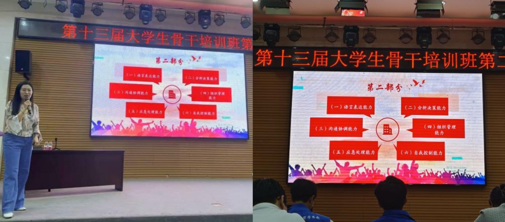 4月22日,培訓(xùn)班第二講邀請(qǐng)校團(tuán)委組織部部長(zhǎng)付強(qiáng)作為主講嘉賓,她圍繞學(xué)生干部的初心與能力提升展開培訓(xùn),強(qiáng)調(diào)理想信念的重要性,并提出學(xué)生干部應(yīng)具備語(yǔ)言表達(dá)、分析決策、溝通協(xié)調(diào)、組織管理、應(yīng)急處理、自我控制六大核心能力。