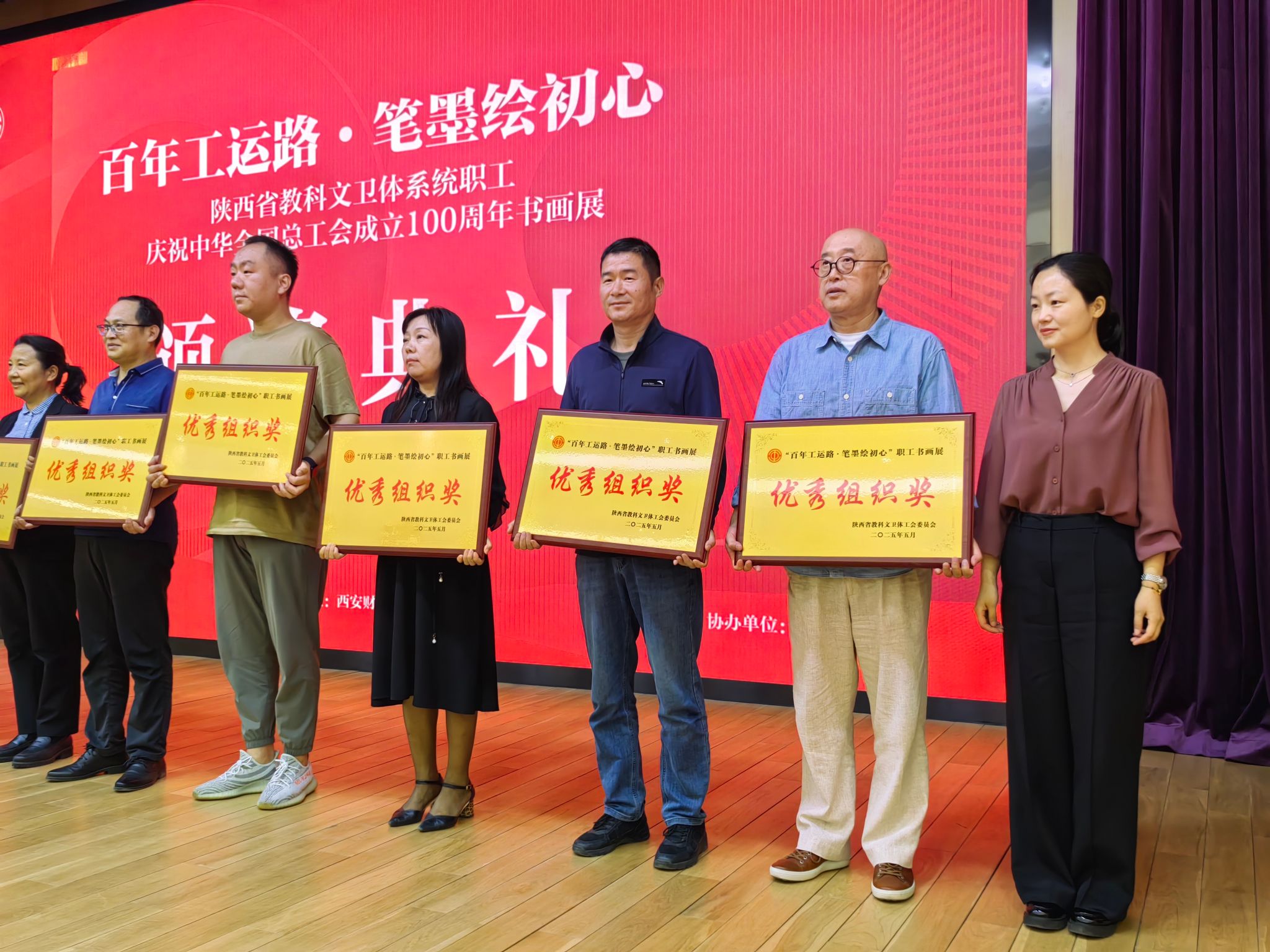 為慶祝中華全國總工會成立100周年,5月9日上午,“百年工運(yùn)路·筆墨繪初心”陜西省教科文衛(wèi)體系統(tǒng)職工書畫展在陜西省圖書館盛大開幕。
