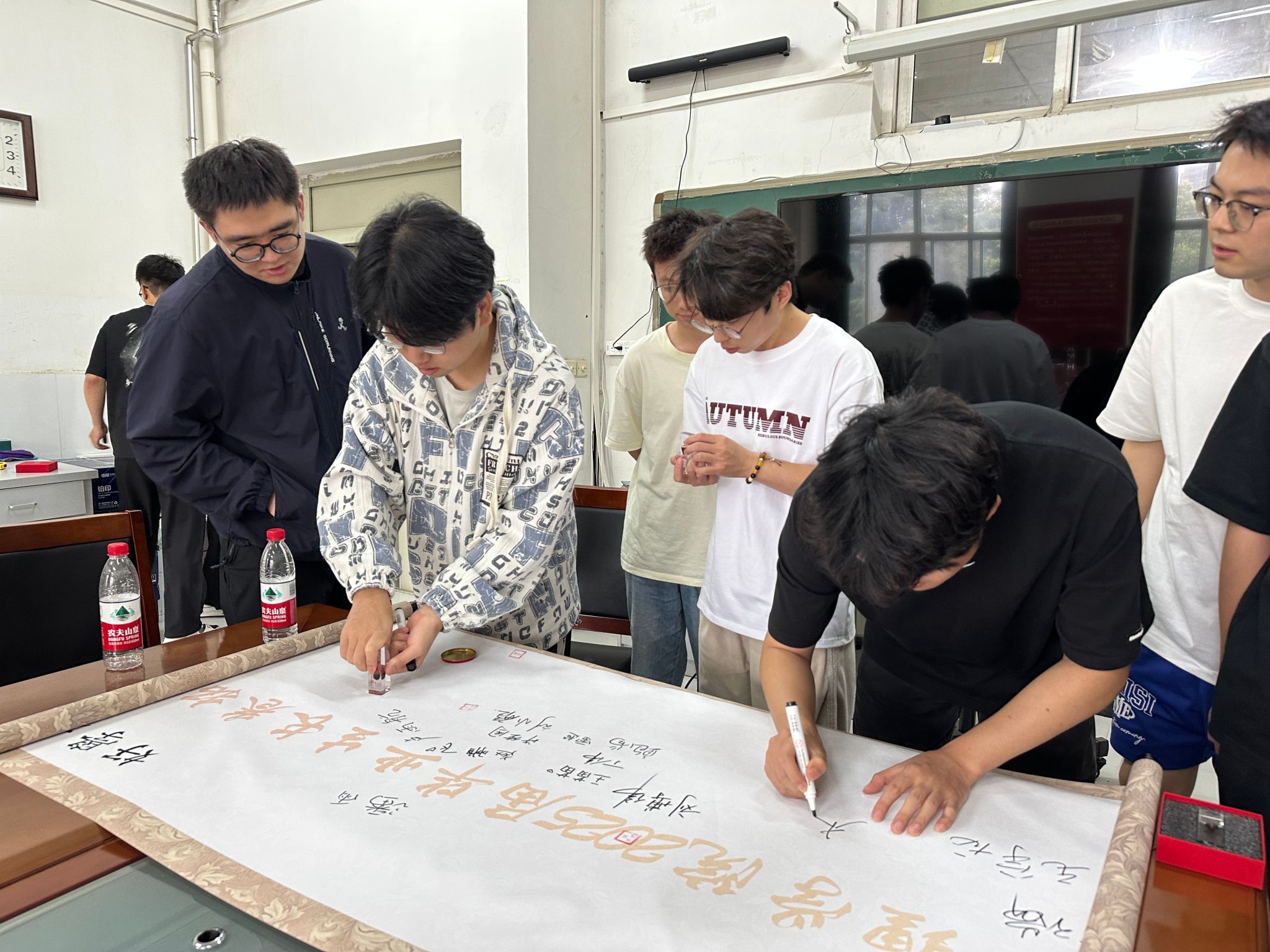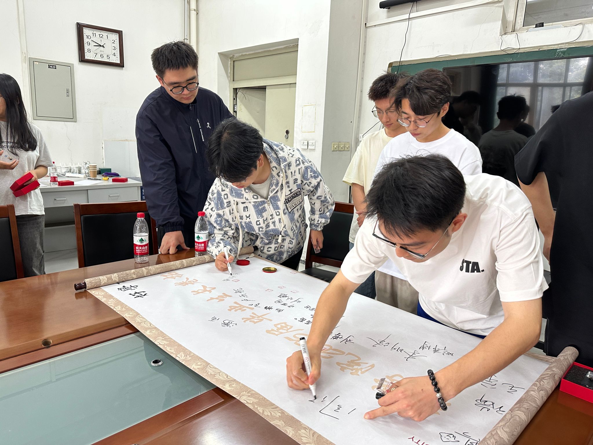 座談會(huì)結(jié)束后,畢業(yè)生同學(xué)代表共同在長(zhǎng)卷上拓印留念,簽字留言,留下畢業(yè)的印記。大家紛紛表示,將永遠(yuǎn)銘記在理學(xué)院的求學(xué)時(shí)光,帶著學(xué)院賦予的知識(shí)和精神,勇敢地踏上新的人生征程。