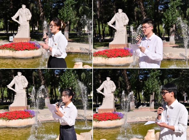 最后,學院黨委書記高小明給大家講述了一堂微黨課。他講到,在鐵人廣場的鐵人雕像前,舉辦“傳承鐵人精神 爭做西部鐵人”研究生畢業(yè)班黨員主題黨日活動,既是對鐵人精神的崇高致敬,也是對我們即將踏上新征程的畢業(yè)班黨員的一次深刻黨性教育。鐵人王進喜,這位新中國石油工業(yè)的奠基人,以他“有條件要上,沒有條件創(chuàng)造條件也要上”的豪邁氣概,為我們樹立了不朽的豐碑。他的愛國情懷、創(chuàng)業(yè)精神、求實態(tài)度和奉獻精神,構成了鐵人精神的豐富內(nèi)涵,激勵著一代又一代石油人不斷前行。今天,師生齊聚在這里,重溫入黨誓詞,就是要銘記初心,牢記鐵人為人民服務的宗旨,將鐵人精神內(nèi)化于心,外化于行。他對全體畢業(yè)班黨員提出三點希望:一是要傳承鐵人精神,堅定理想信念。鐵人精神的核心是愛國和奉獻,是面對困難和挑戰(zhàn)時的不屈不撓。作為新時代的青年黨員,要時刻牢記自己的初心和使命,將個人的理想追求融入到國家和民族的事業(yè)中去,為實現(xiàn)中華民族偉大復興的中國夢貢獻自己的力量。二是要勇?lián)鷷r代責任,爭做西部鐵人。服務國家能源戰(zhàn)略,是我們石油人義不容辭的責任。學院大部分同學選擇了在西部就業(yè)、在能源領域就業(yè),希望大家繼承和發(fā)揚“鐵人精神”,牢記“將能源的飯碗牢牢的端在自己手里”,不畏艱難,勇于擔當,成為能源戰(zhàn)線上的主力軍。三是要持續(xù)學習進步,發(fā)揮示范引領。希望大家在學中干、在干中學,養(yǎng)成終身學習的好習慣。每一名黨員要牢記自己的身份和責任,發(fā)揮黨員先鋒模范作用。要傳承鐵人精神,爭做西部鐵人,用實際行動書寫屬于青年學子的精彩篇章!