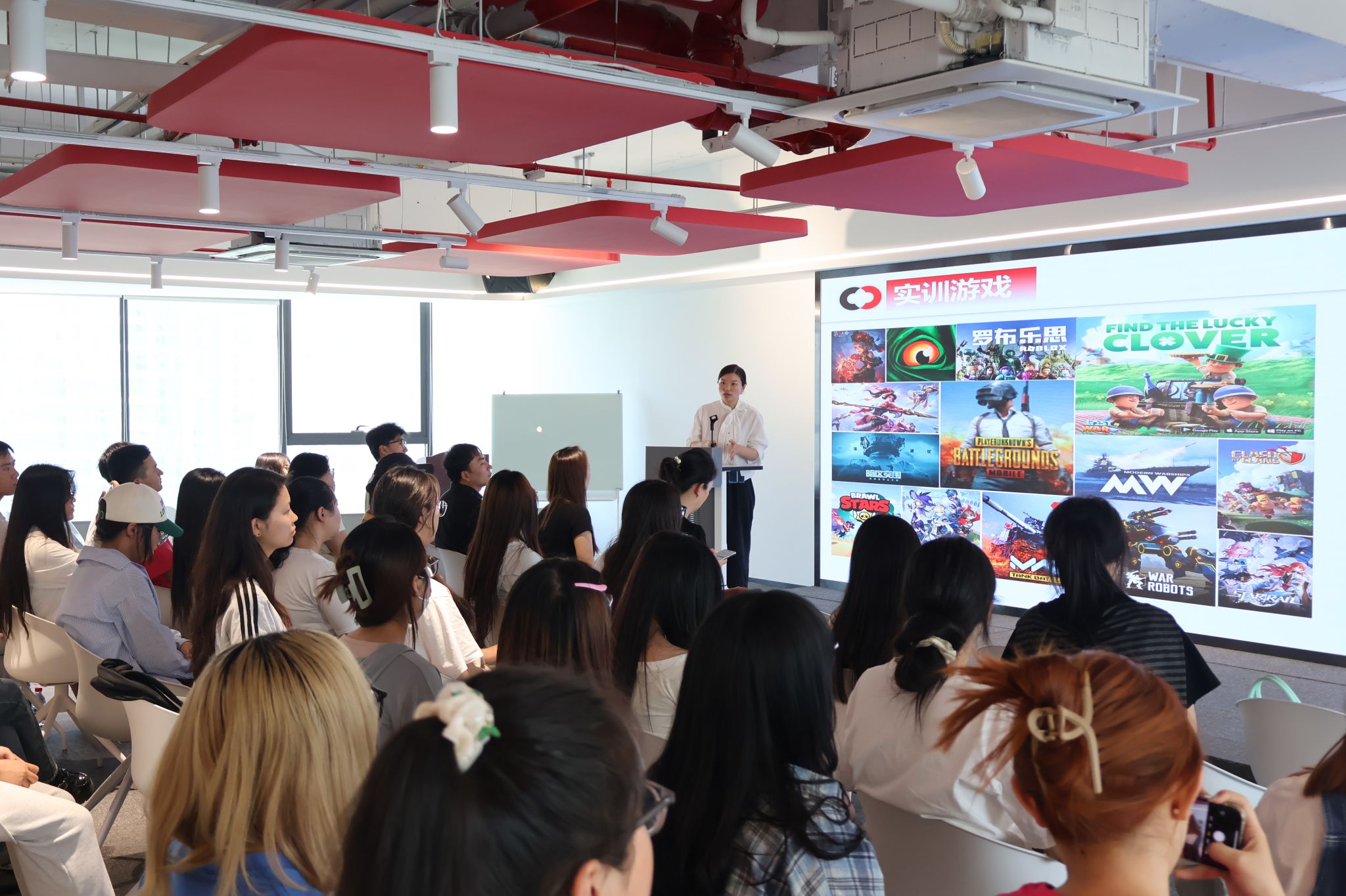 栢奕集團(tuán)招聘負(fù)責(zé)人曹孔首先介紹了實(shí)習(xí)生培訓(xùn)管理體系,并講解了企業(yè)與多方合作開發(fā)手游的模式,展示了公司文化標(biāo)識(shí)和特色辦公環(huán),帶領(lǐng)師生實(shí)地參觀游戲研發(fā)部、項(xiàng)目發(fā)展部等部門,了解游戲視頻制作流程及工作環(huán)境。