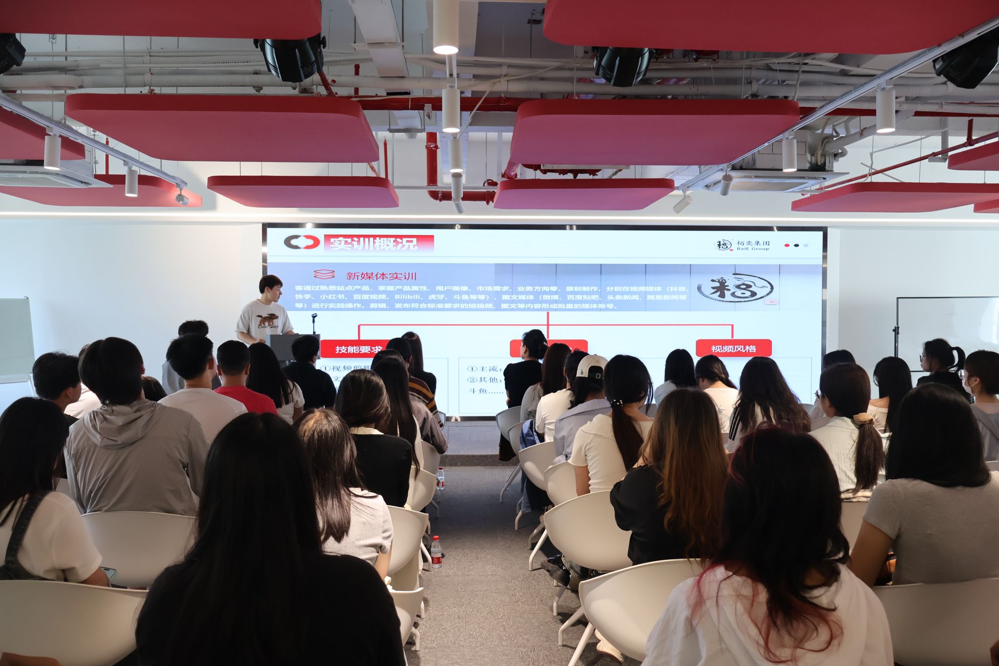 隨后,“刺氪”項(xiàng)目負(fù)責(zé)人王君詳細(xì)講解了短視頻行業(yè)的商業(yè)邏輯,涵蓋趨勢(shì)分析、內(nèi)容制作、軟件運(yùn)營(yíng)及數(shù)據(jù)分析等環(huán)節(jié)。技術(shù)指導(dǎo)崔瀚文則結(jié)合案例,拆解了游戲類短視頻的制作類型與全流程。人力資源總監(jiān)王汐妍介紹了“產(chǎn)教融合新媒體實(shí)訓(xùn)營(yíng)”的培訓(xùn)方式、地點(diǎn)、要求、職業(yè)發(fā)展路徑、實(shí)訓(xùn)就業(yè)等具體情況。同學(xué)們圍繞“零經(jīng)驗(yàn)如何入行”“行業(yè)發(fā)展趨勢(shì)”等話題踴躍提問,并表示對(duì)實(shí)訓(xùn)營(yíng)非常感興趣,主動(dòng)加群報(bào)名。