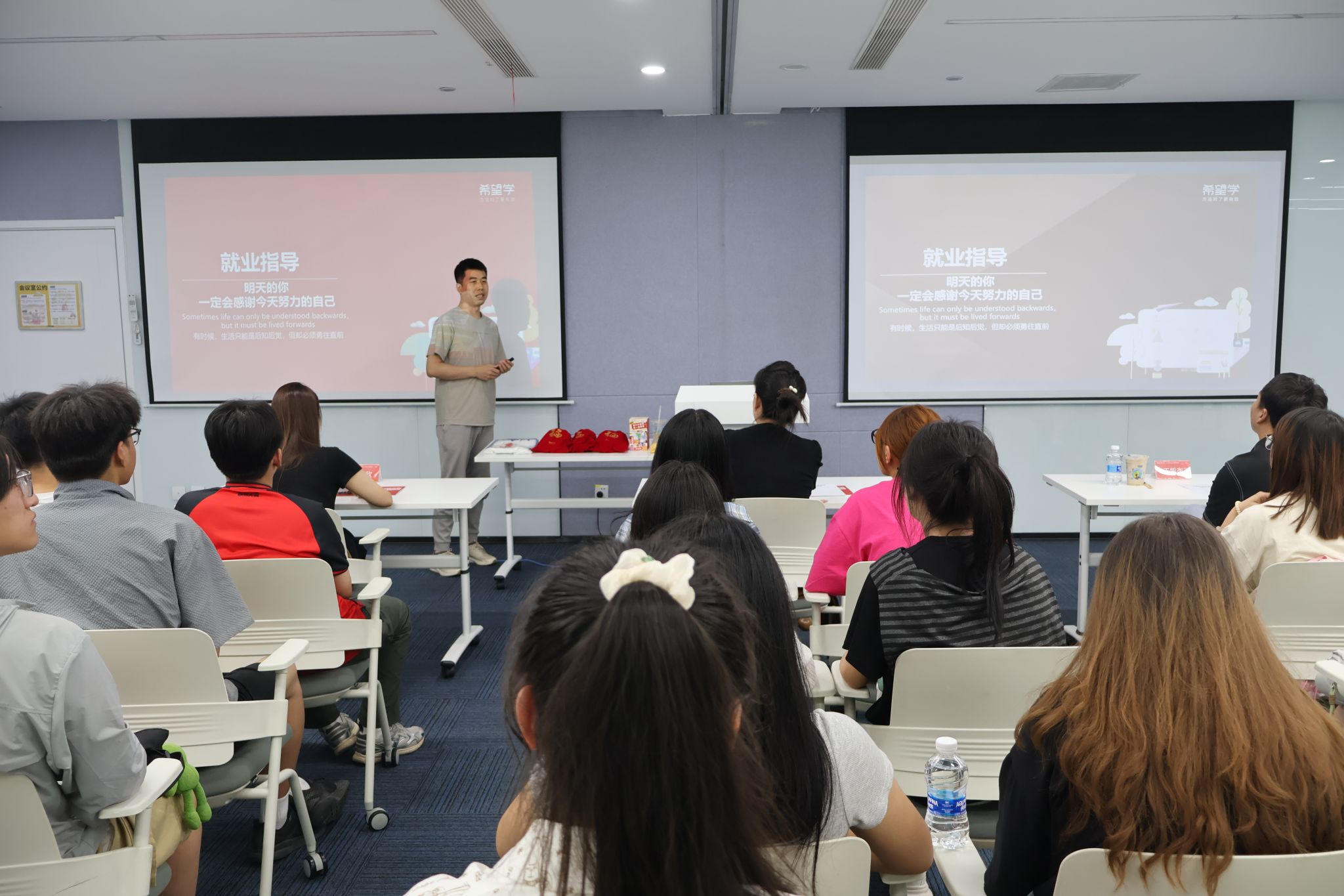 希望學(xué)人力資源負(fù)責(zé)人王鈺佳向?qū)W院師生介紹了機(jī)構(gòu)背景與發(fā)展歷程,通過云游博物館、吉木乃縣教育公益等項(xiàng)目案例,展示了企業(yè)教育理念與社會(huì)責(zé)任;并詳細(xì)說明了希望學(xué)“主講教師+班主任”雙師模式的崗位職責(zé)、福利待遇及兼職實(shí)習(xí)崗位的招聘要求。