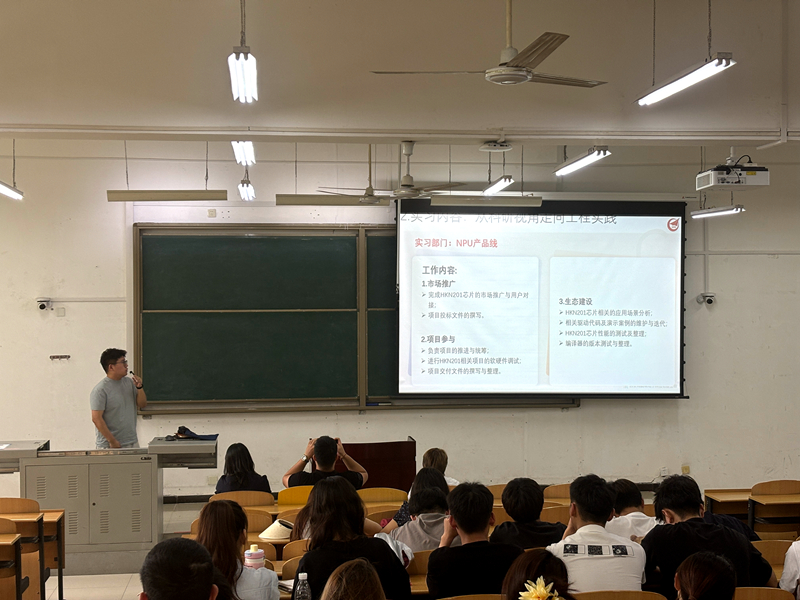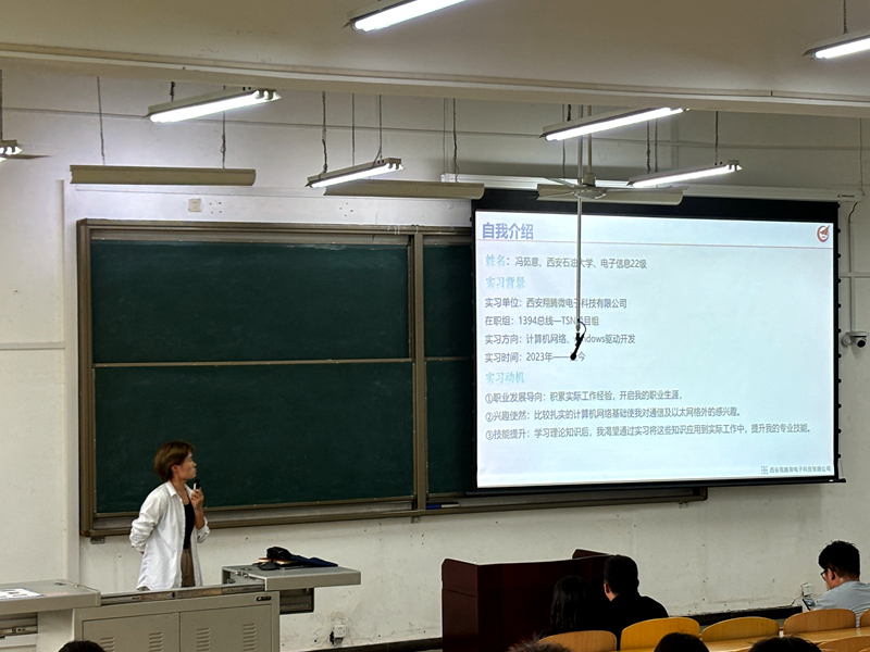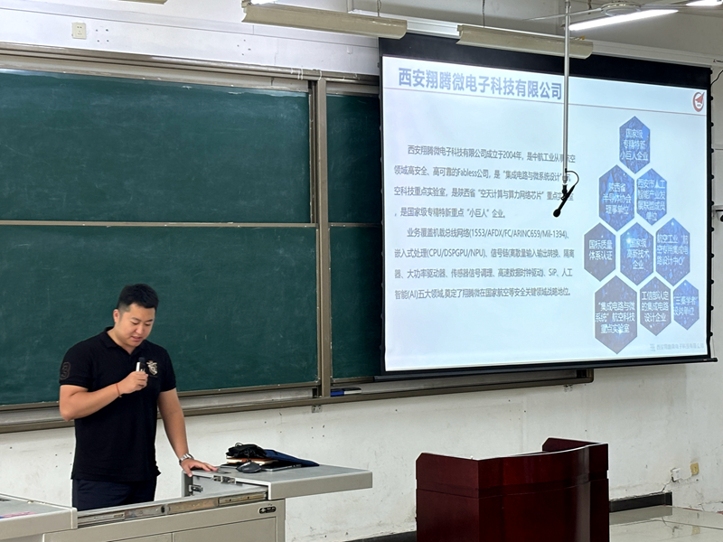 隨后,杜明輝進(jìn)行了講解。他從公司科研環(huán)境、合作科研基地、服務(wù)平臺(tái)以及主要研發(fā)方向等方面,向同學(xué)們?cè)敿?xì)介紹了西安翔騰微電子科技有限公司的基本情況和實(shí)習(xí)情況。作為與學(xué)校保持了五年校企合作關(guān)系的企業(yè),公司在行業(yè)內(nèi)成績(jī)斐然,相信會(huì)為同學(xué)們的實(shí)習(xí)實(shí)踐提供廣闊的空間。學(xué)校研究生的加入也將為公司持續(xù)注入人才活力。