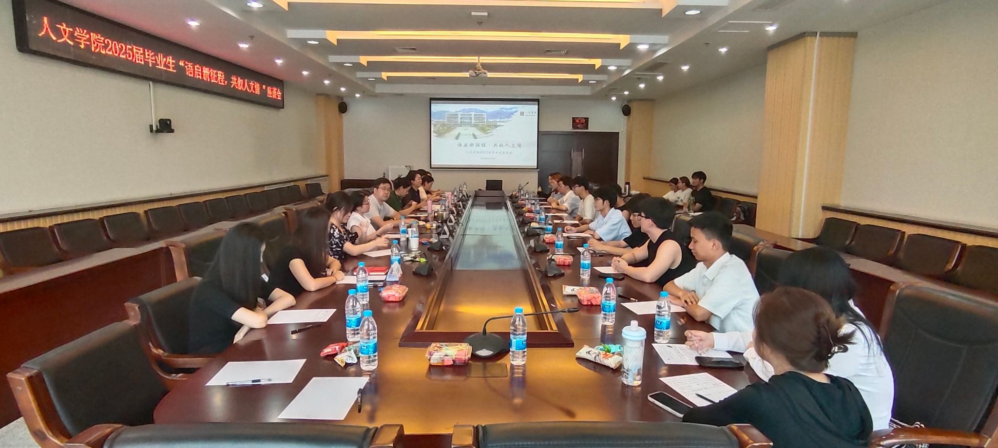 為傾聽畢業(yè)生心聲,凝聚學(xué)院發(fā)展共識。6月11日下午,人文學(xué)院在鄠邑校區(qū)圖書館第二會議室召開了2025屆畢業(yè)生“語啟新征程,共敘人文情”座談會。人文學(xué)院院長方亭、黨委副書記盛丹、副院長蘭昆,學(xué)院各系教師代表、學(xué)工辦主任范嘉欣、畢業(yè)班輔導(dǎo)員張馨元出席會議,2025屆優(yōu)秀畢業(yè)生代表參會。座談會由盛丹主持。