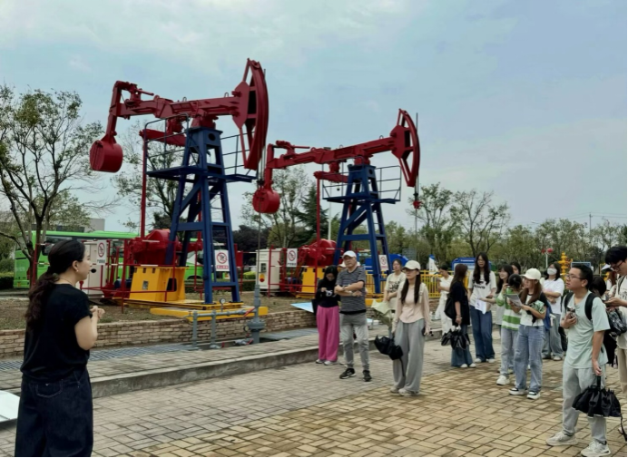 6月18日,全體學(xué)生來到長慶油田西安油氣綜合實(shí)訓(xùn)基地,開啟“外語+石油”實(shí)踐教學(xué)。在油田實(shí)訓(xùn)區(qū),學(xué)生通過模擬鉆井平臺、抽油機(jī)等設(shè)備觀摩石油開采全流程;氣田實(shí)訓(xùn)區(qū)的天然氣凈化裝置模型前,技術(shù)人員用中英雙語講解井口作業(yè)原理。實(shí)訓(xùn)中,學(xué)生在油氣加工區(qū)觀察蒸餾塔模型演示原油提煉,于鉆井作業(yè)區(qū)觸摸真實(shí)鉆桿部件,更在數(shù)字化培訓(xùn)室通過智能監(jiān)控系統(tǒng)模擬操作英語指令?;貏?chuàng)新創(chuàng)效展室的員工技術(shù)成果展示,讓學(xué)生深度感受石油行業(yè)的創(chuàng)新文化與實(shí)踐精神,實(shí)現(xiàn)語言能力與能源行業(yè)知識的跨界融合。